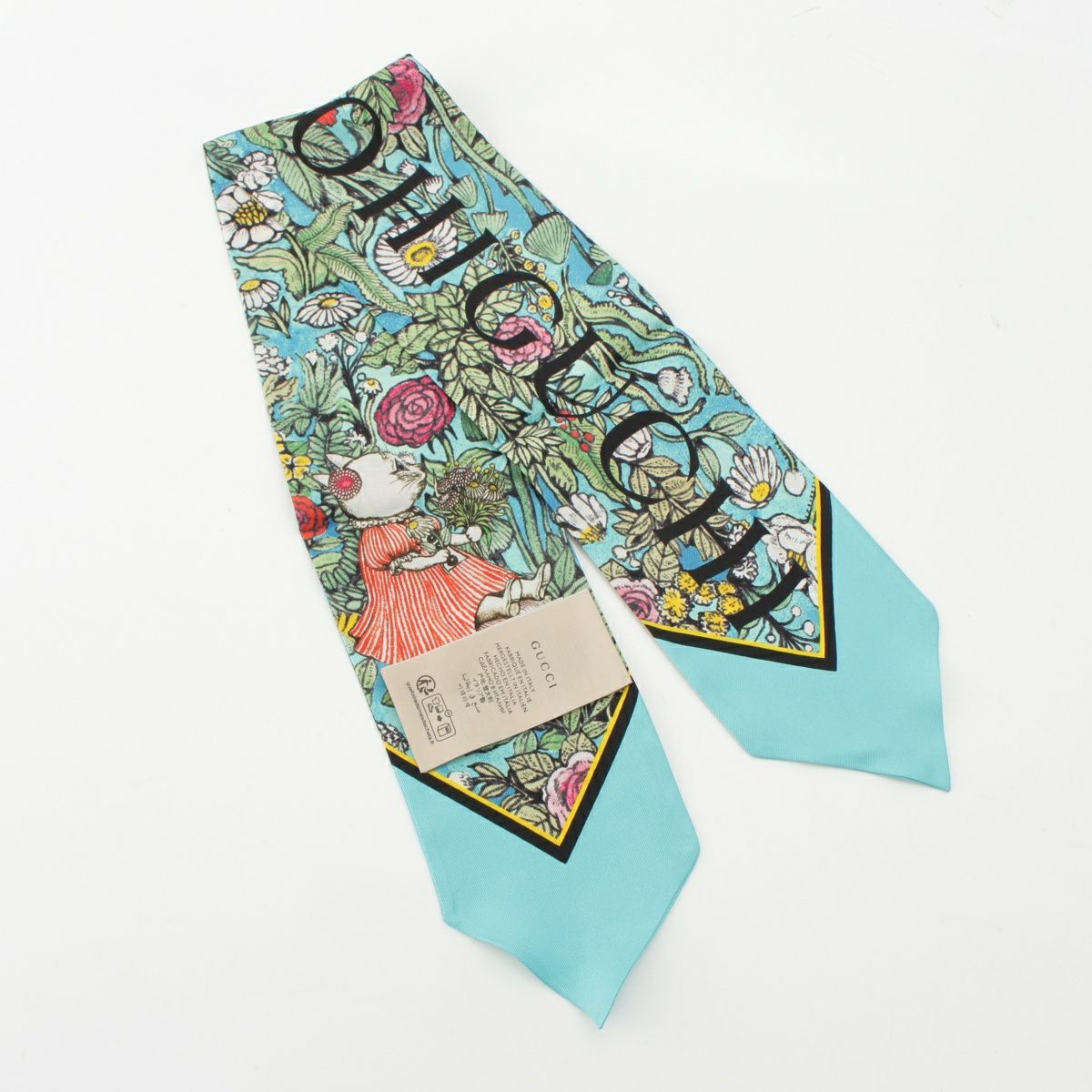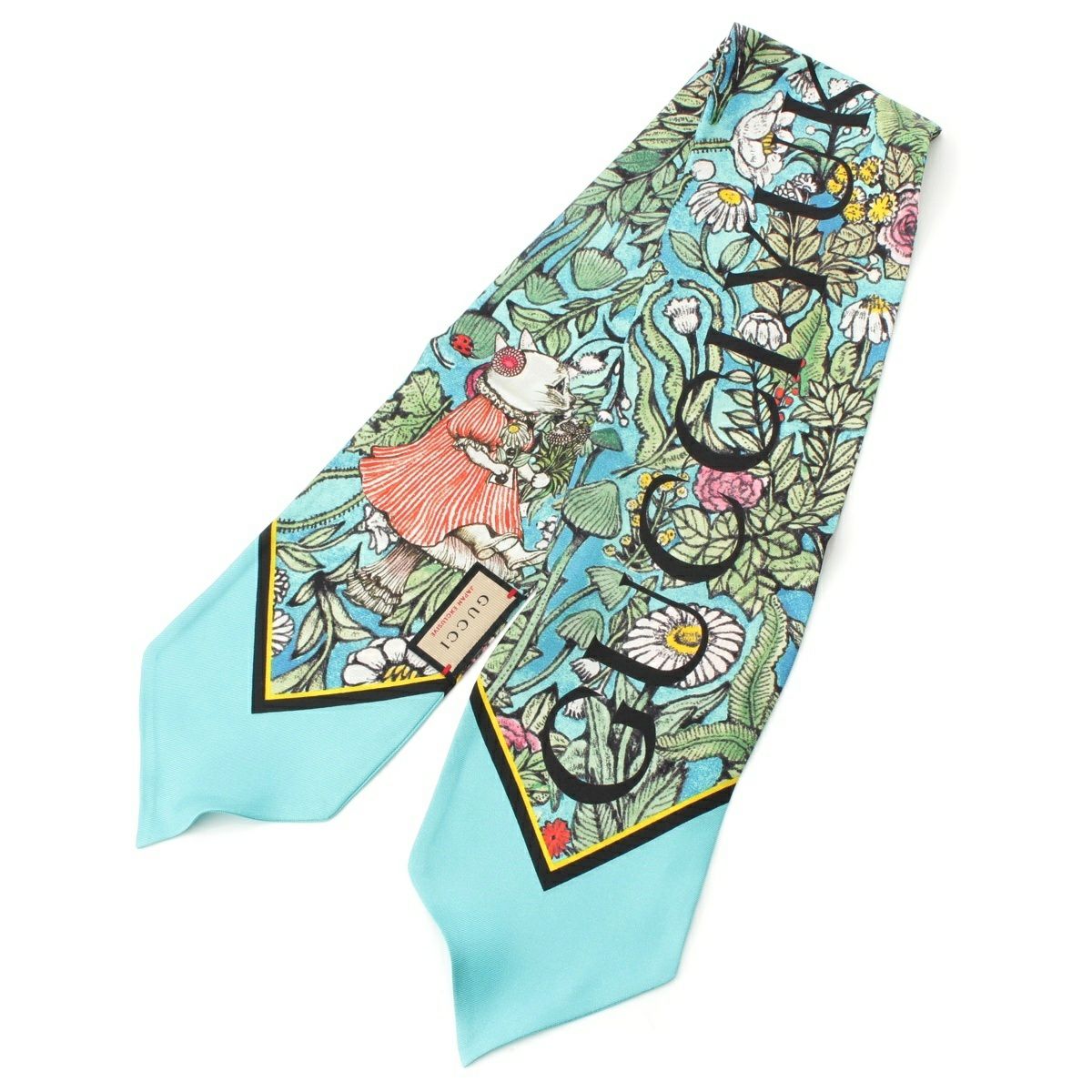 グッチ ヒグチユウコ YUKO HIGUCHI シルク フラワー キャット ネックボウ スカーフ 737551 ブルー