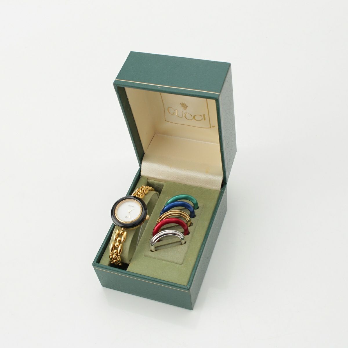 グッチ GP ヴィンテージ オールドグッチ チェンジベゼル チェーンウォッチ 腕時計 クオーツ ホワイト文字盤 11/12 ゴールド