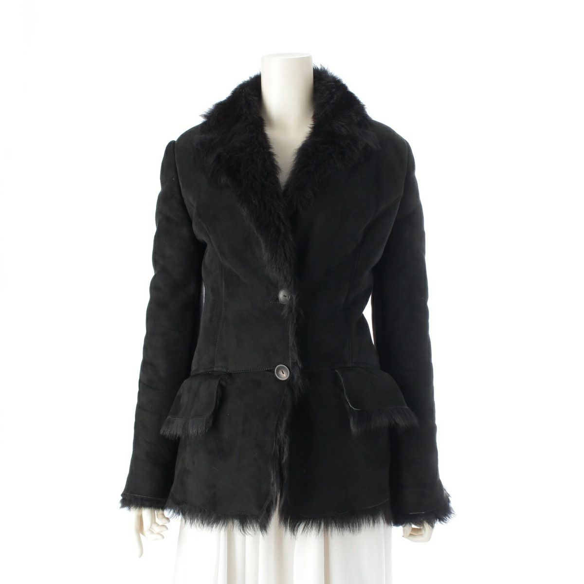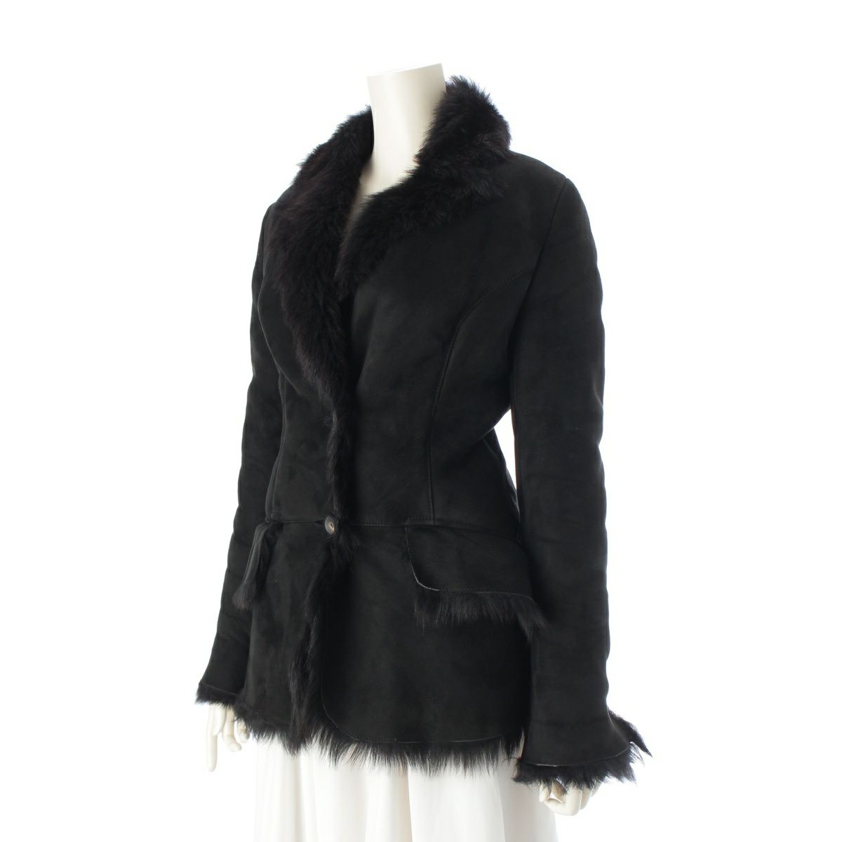グッチ レザー トムフォード期 ファー ムートン ジャケット コート アウター ブラック 40