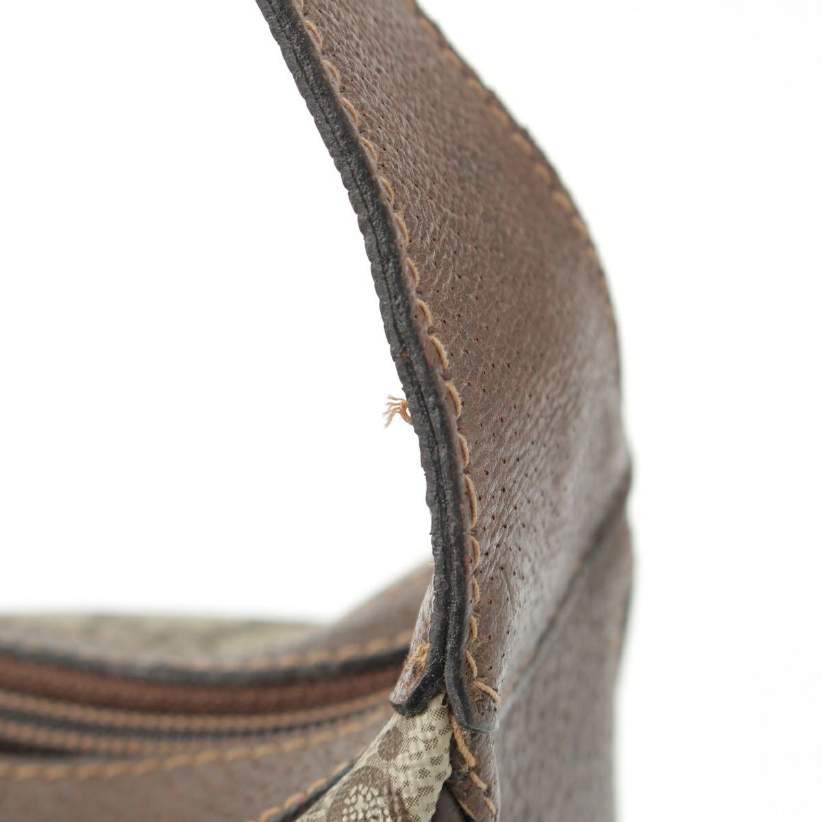 ダメージ箇所: 表面、内側、金具に汚れ/擦れ/傷/劣化/シワ/型崩れ、保管臭のようなニオイ