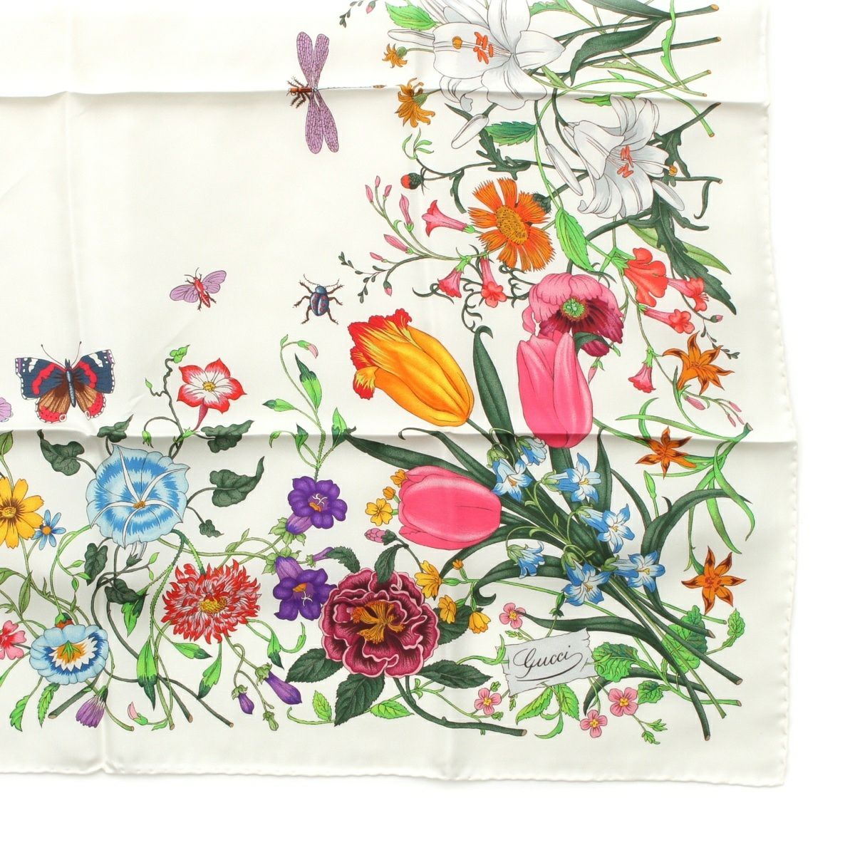 グッチ 24年 シルク フローラル お花柄 スカーフ ホワイト マルチカラー