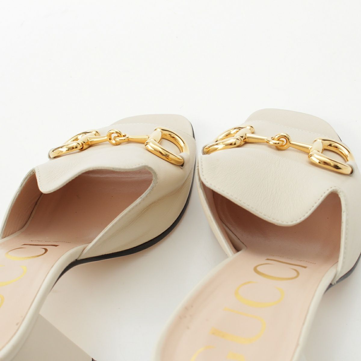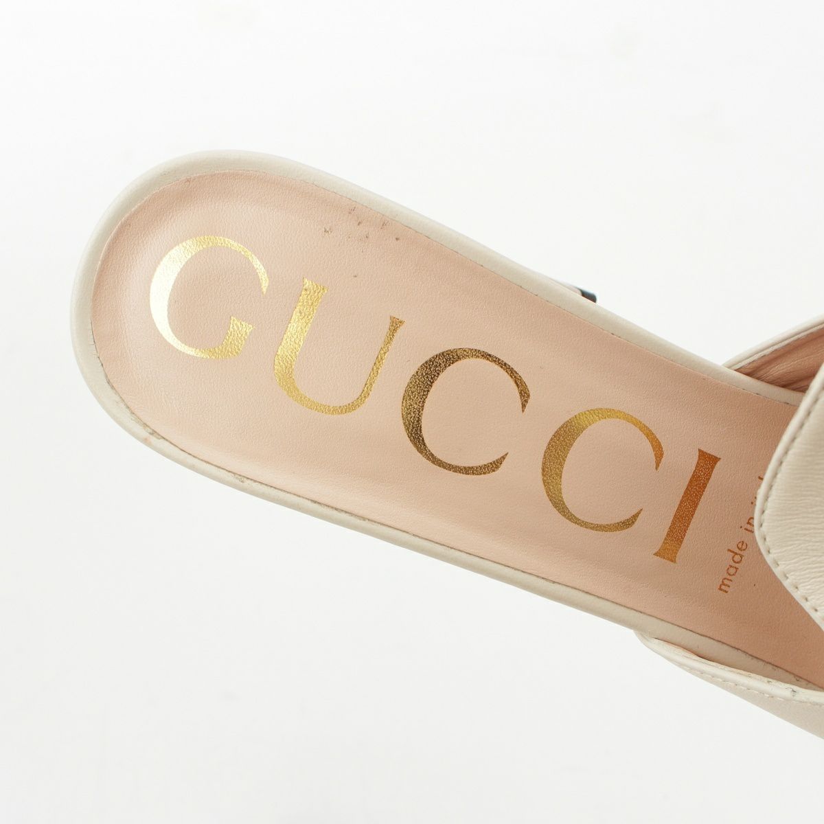グッチ ホースビット ヒール ミュール サンダル シューズ ホワイト 38