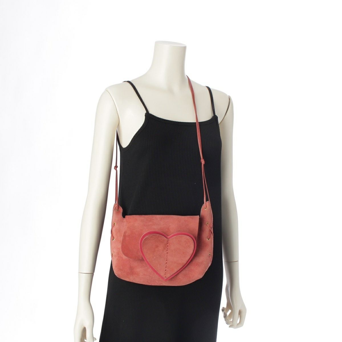 グッチ 2002 S/S スウェードレザー トムフォード期 ハートモチーフ レースアップ ポシェット ミニ ショルダーバッグ ピンク
