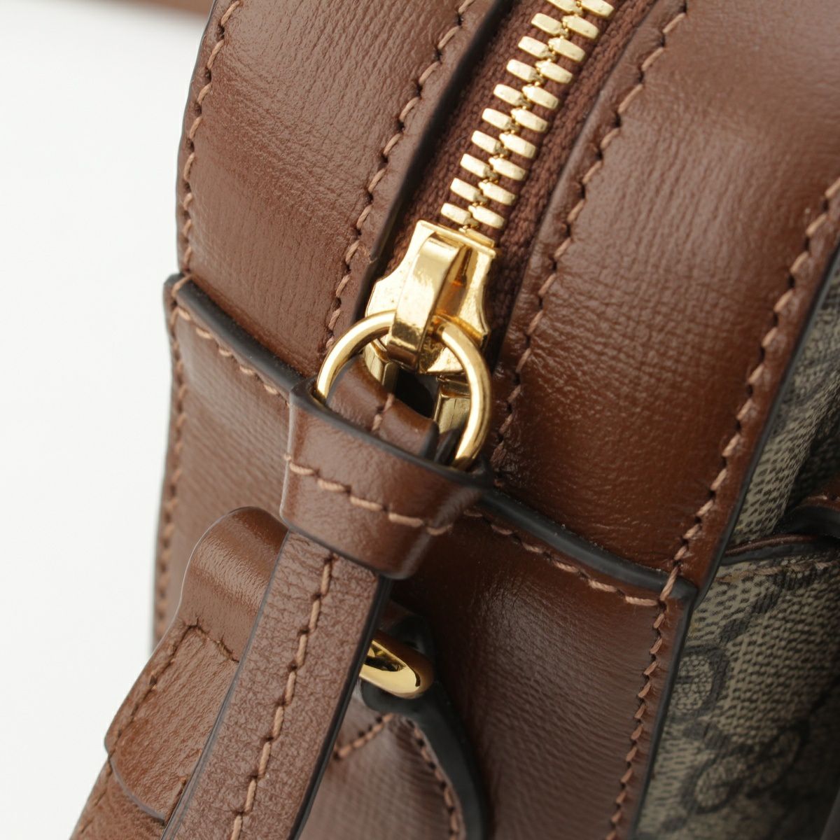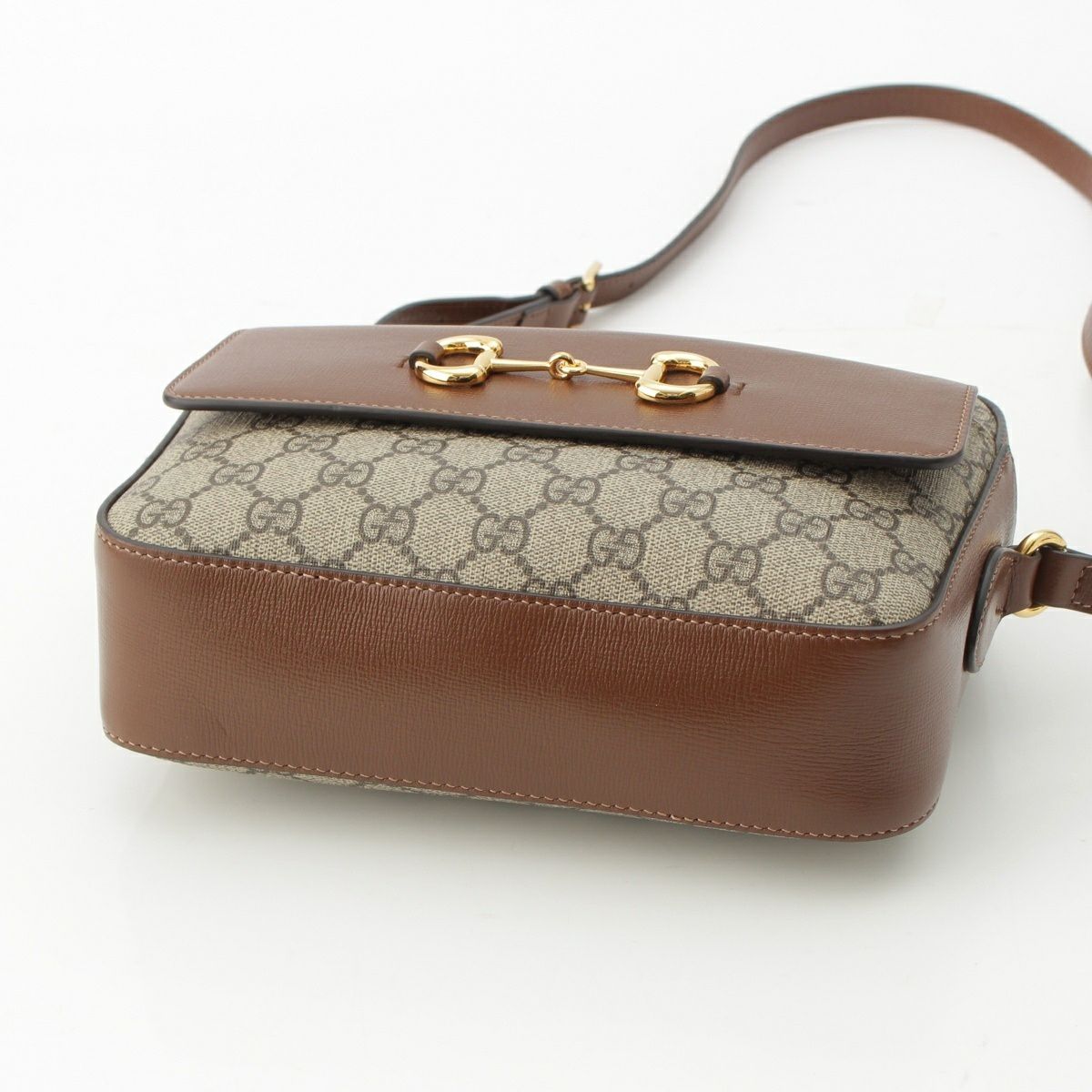 グッチ GGスプリーム ホースビット PVC×レザー ゴールド金具 ショルダーバッグ 645454 ブラウン ベージュ