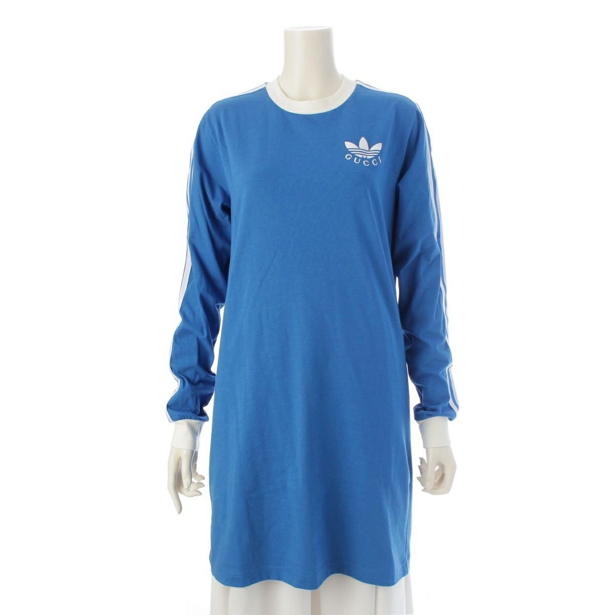 グッチ アディダス ロゴ ストライプ シャツ 長袖 ワンピース 693537 ブルー S