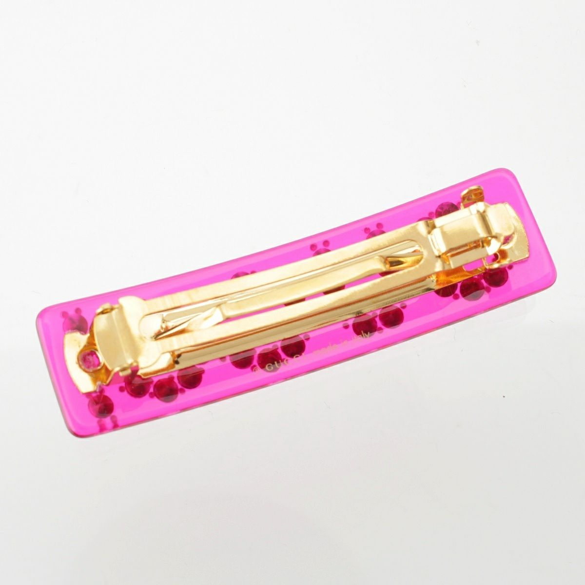 グッチ ロゴ ラインストーン バレッタ ヘアアクセサリー ピンク