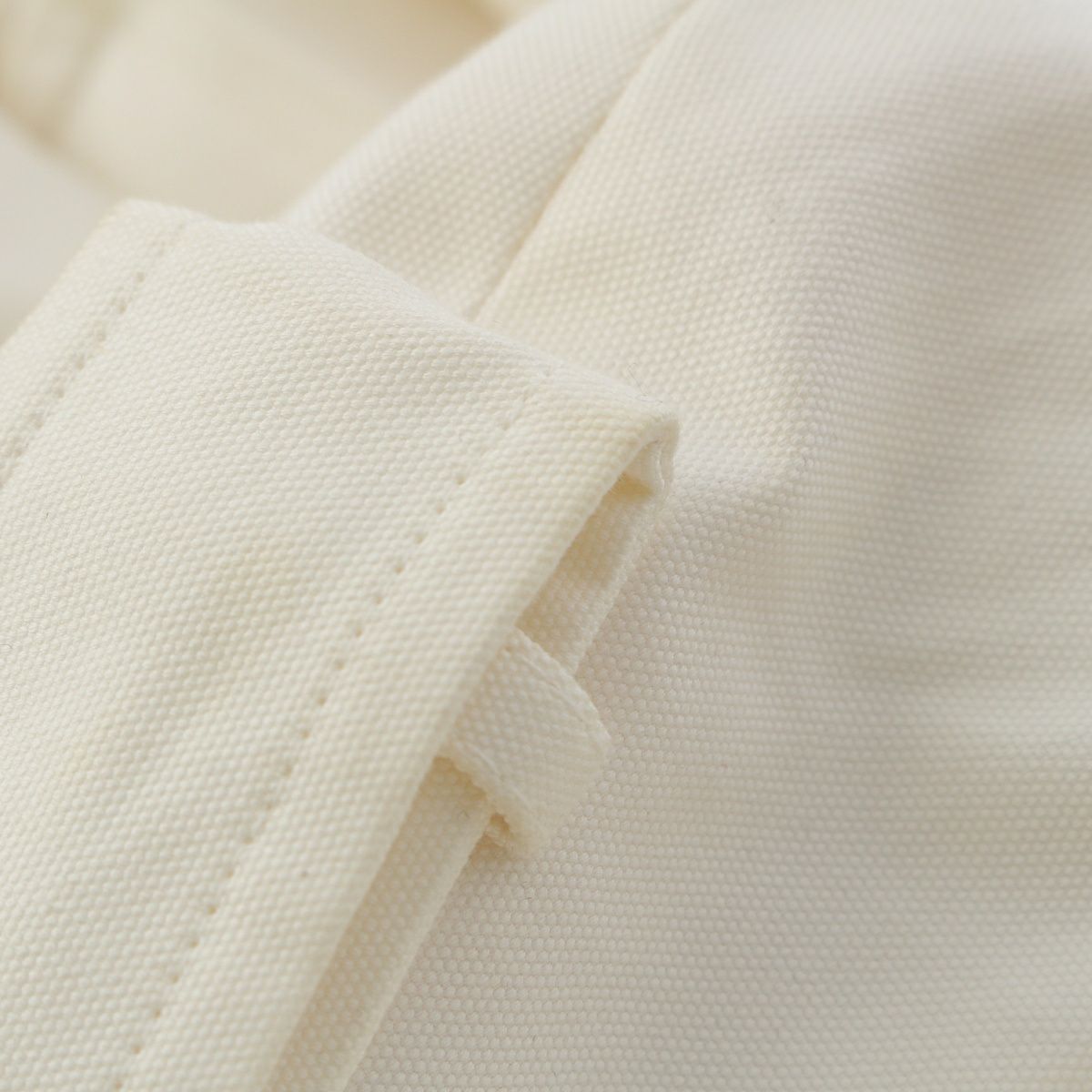 ダメージ箇所: 襟折り目:汚れあり 肩ストラップ:汚れあり 袖口・袖裏:汚れあり 裾元・裾裏:汚れあり ※全体的に同様の汚れあり 前身頃左胸元ボタン:ほつれあり、