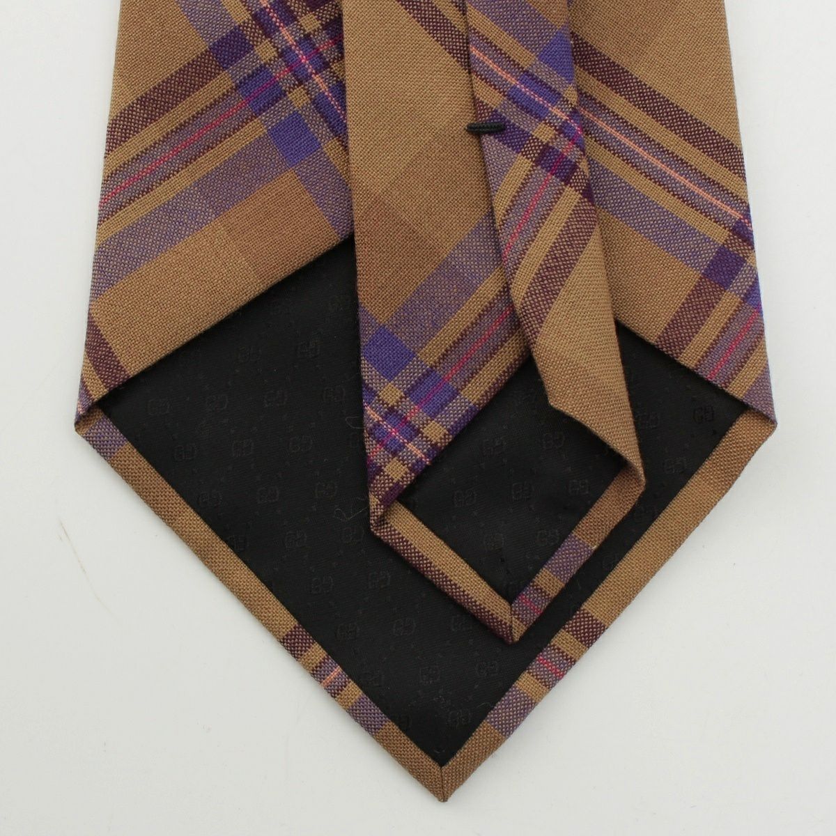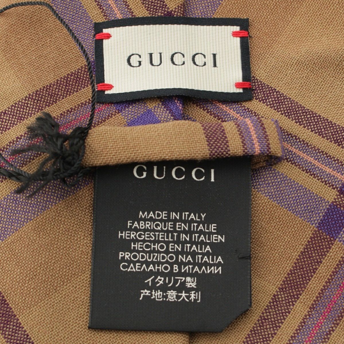 グッチ ミケーレ ウール アクセサリー チェック ワンタッチ ネクタイ ブラウン マルチカラー