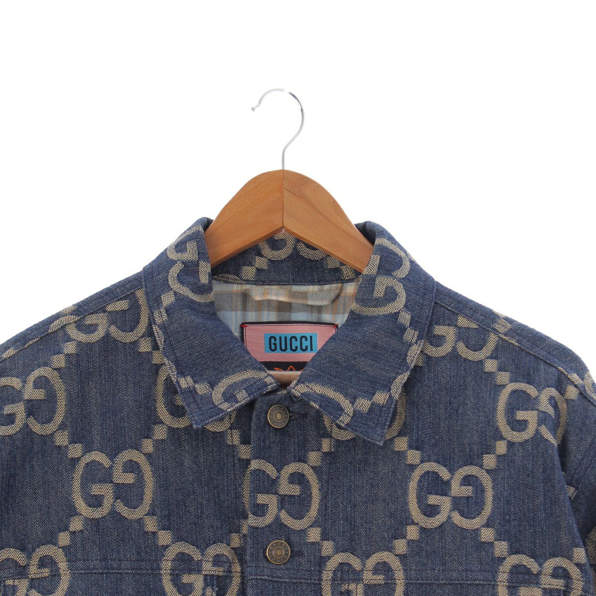 グッチ コットンデニム GGジャガード 総柄 デニムジャケット ブルゾン 674338 インディゴブルー 44