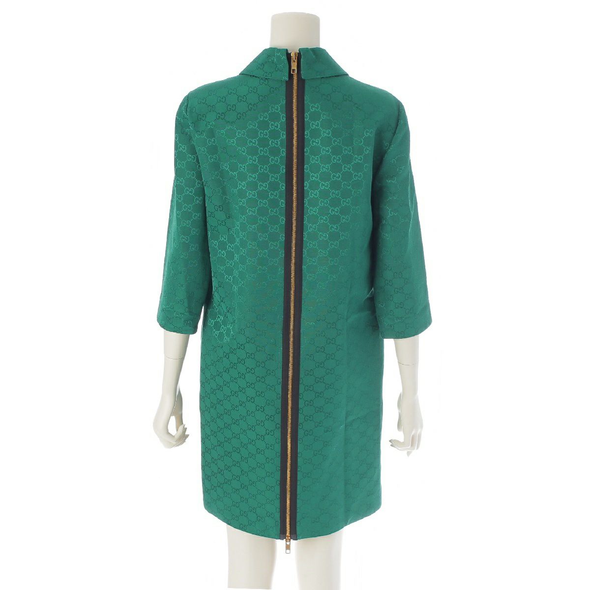 グッチ コットン Light GG バックジップ ワンピース 七分袖 襟付 ドレス 681381 グリーン 38