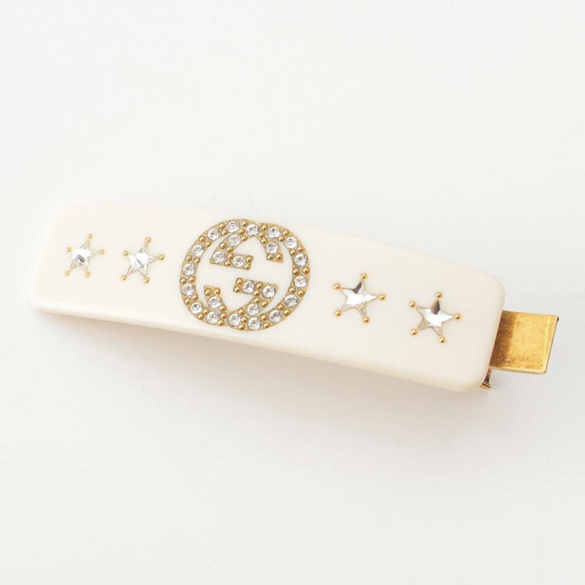 グッチ Gucci グッチ インターロッキングG スター ラインストーン バレッタ ヘアクリップ ベージュ
