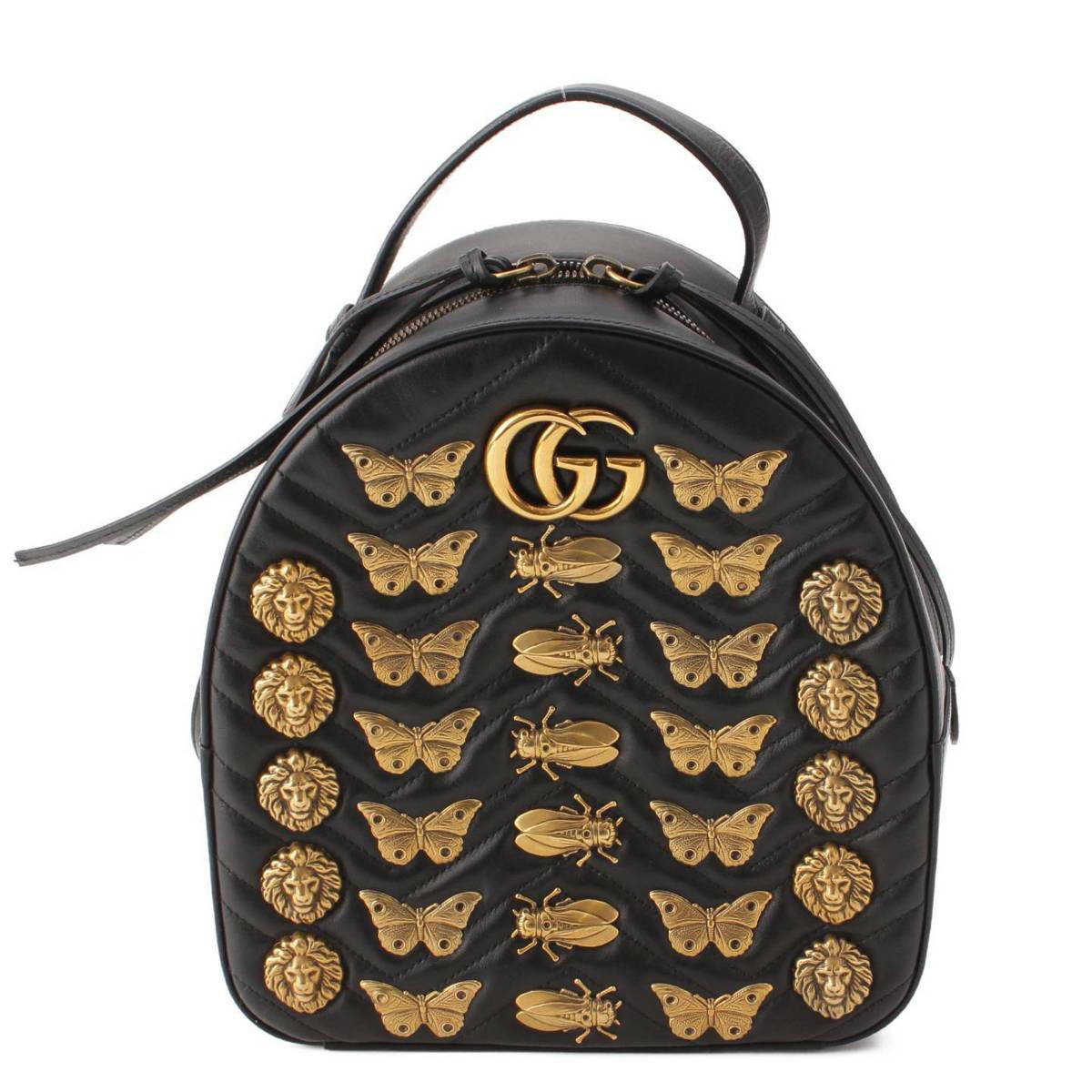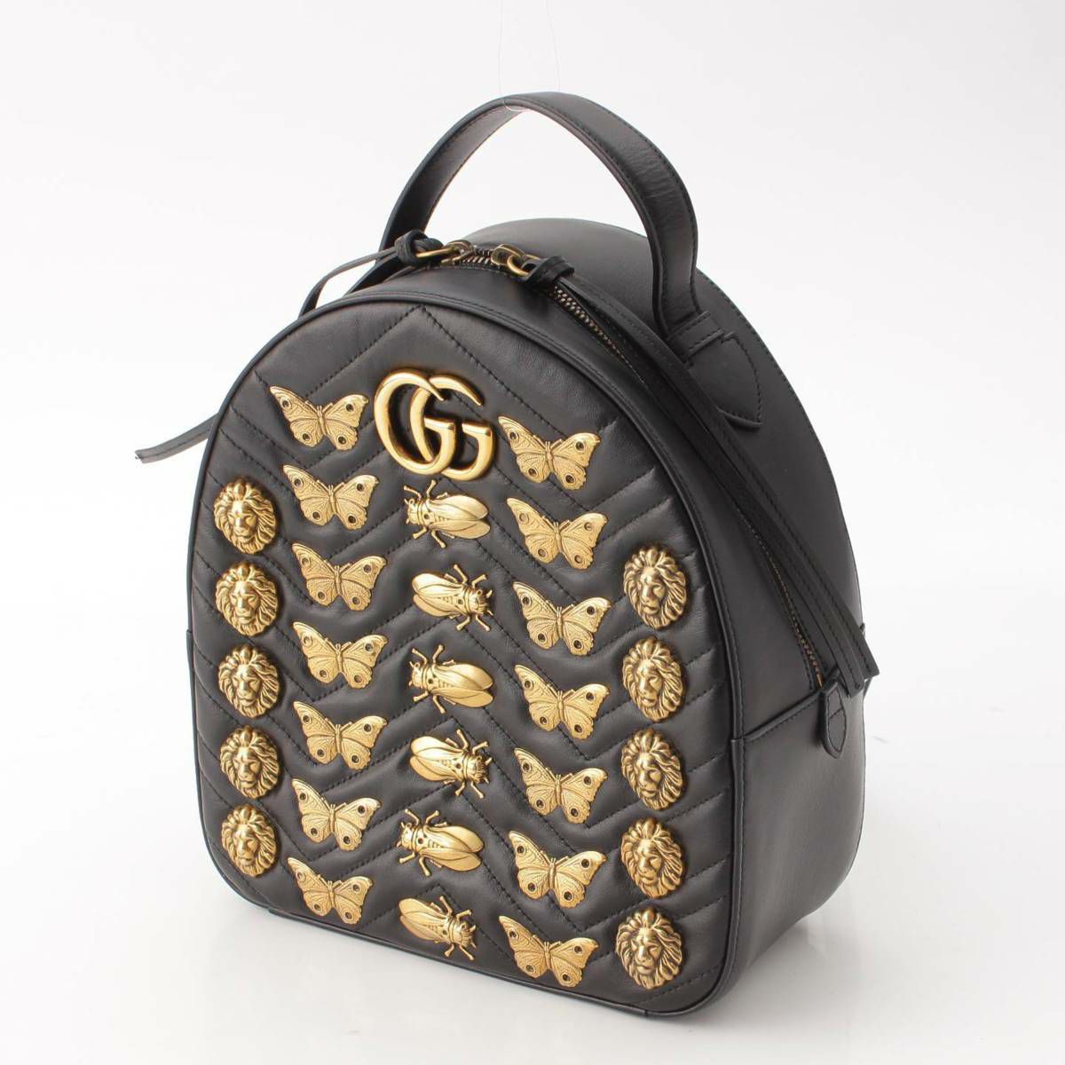 グッチ Gucci GGマーモント アニマル柄 バタフライ レザー バックパック リュック 476671 ブラック