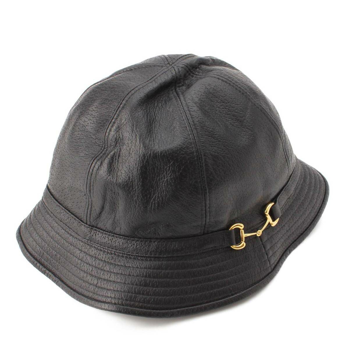 グッチ 22SS メンズ ホースビット レザー バケットハット 帽子 666600 ブラック XL