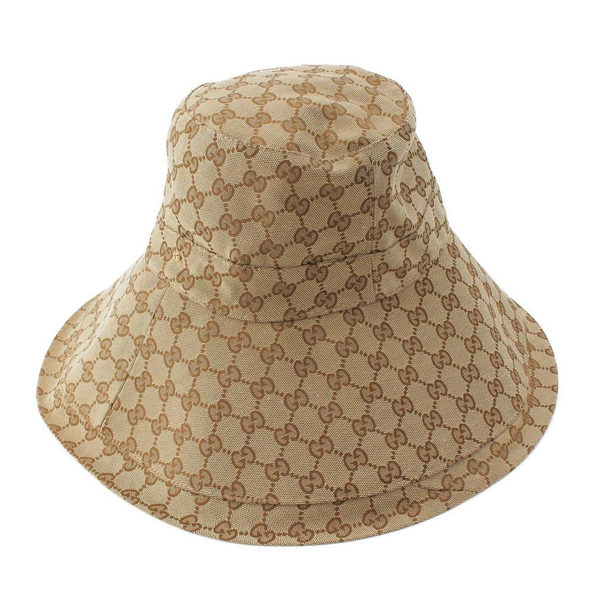 グッチ Gucci GGキャンバス エコ ウォッシュド ワイドブリムハット 帽子 631958 ブラウン L