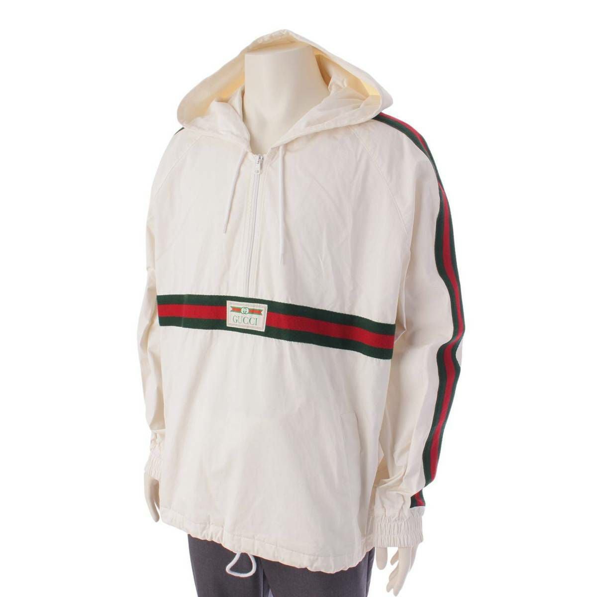グッチ Gucci メンズ ロゴラベル コットン キャンバス ウインドブレーカー 594861 ホワイト 52