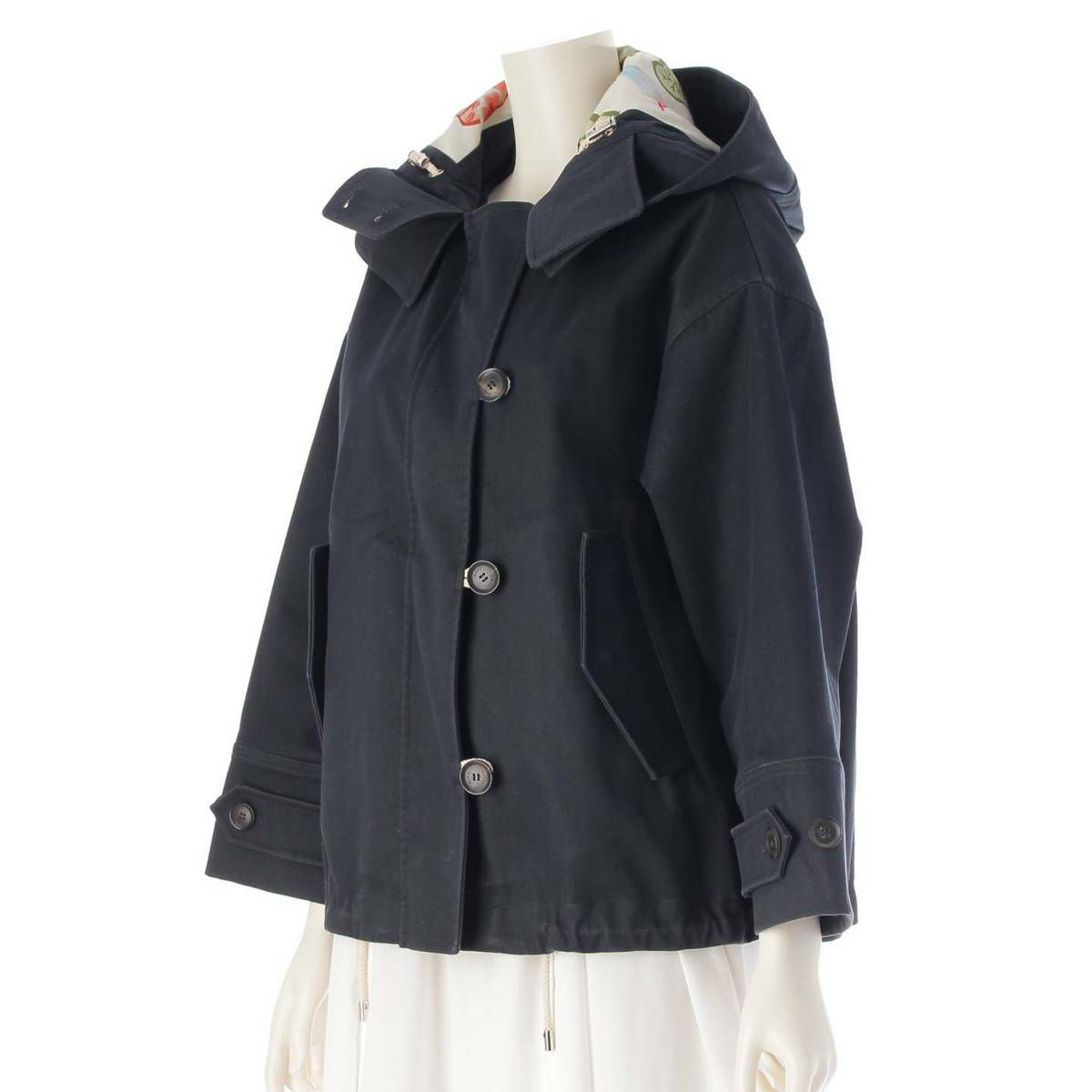グッチ 14年 裏地総柄 コットン フード ジャケット ショートコート 367700 ネイビー 36