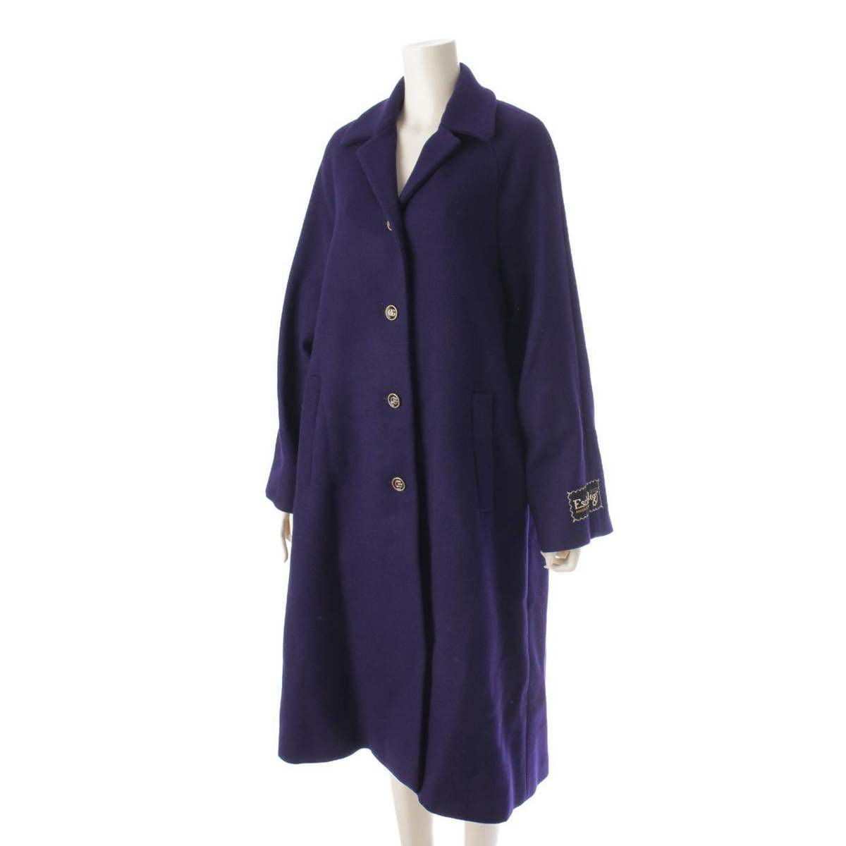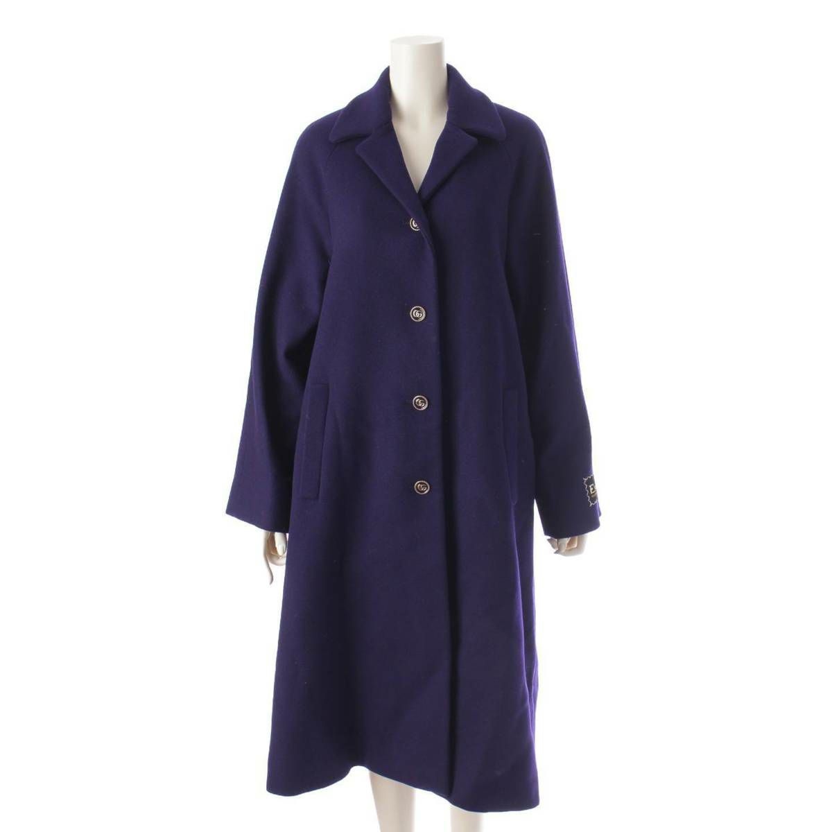 グッチ GGボタン ロゴラベル ウール ロングコート アウター 655261 ネイビー パープル系 40