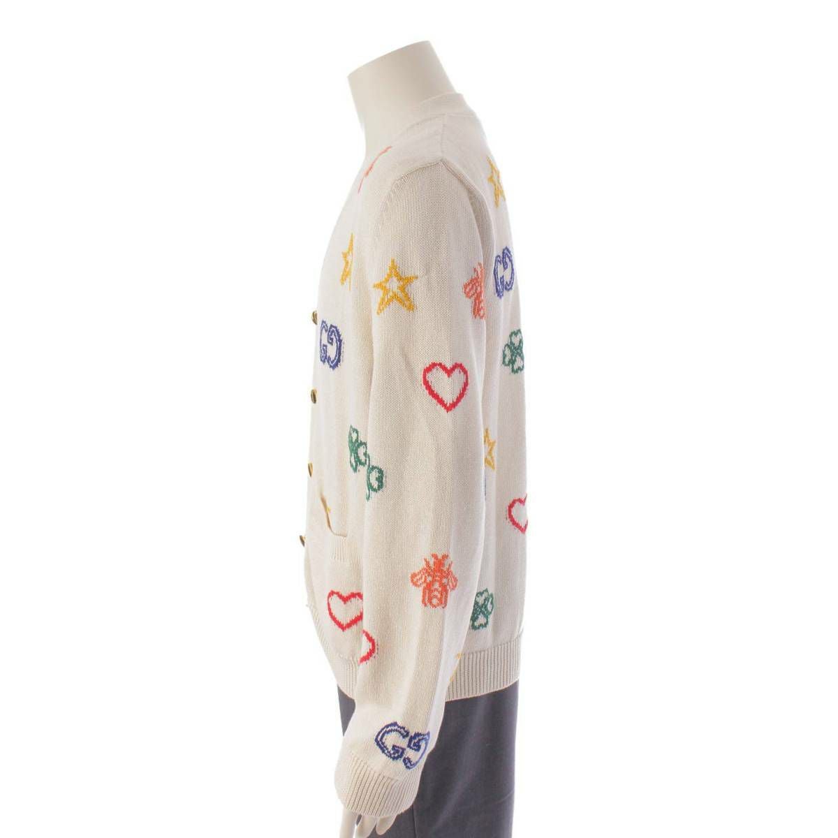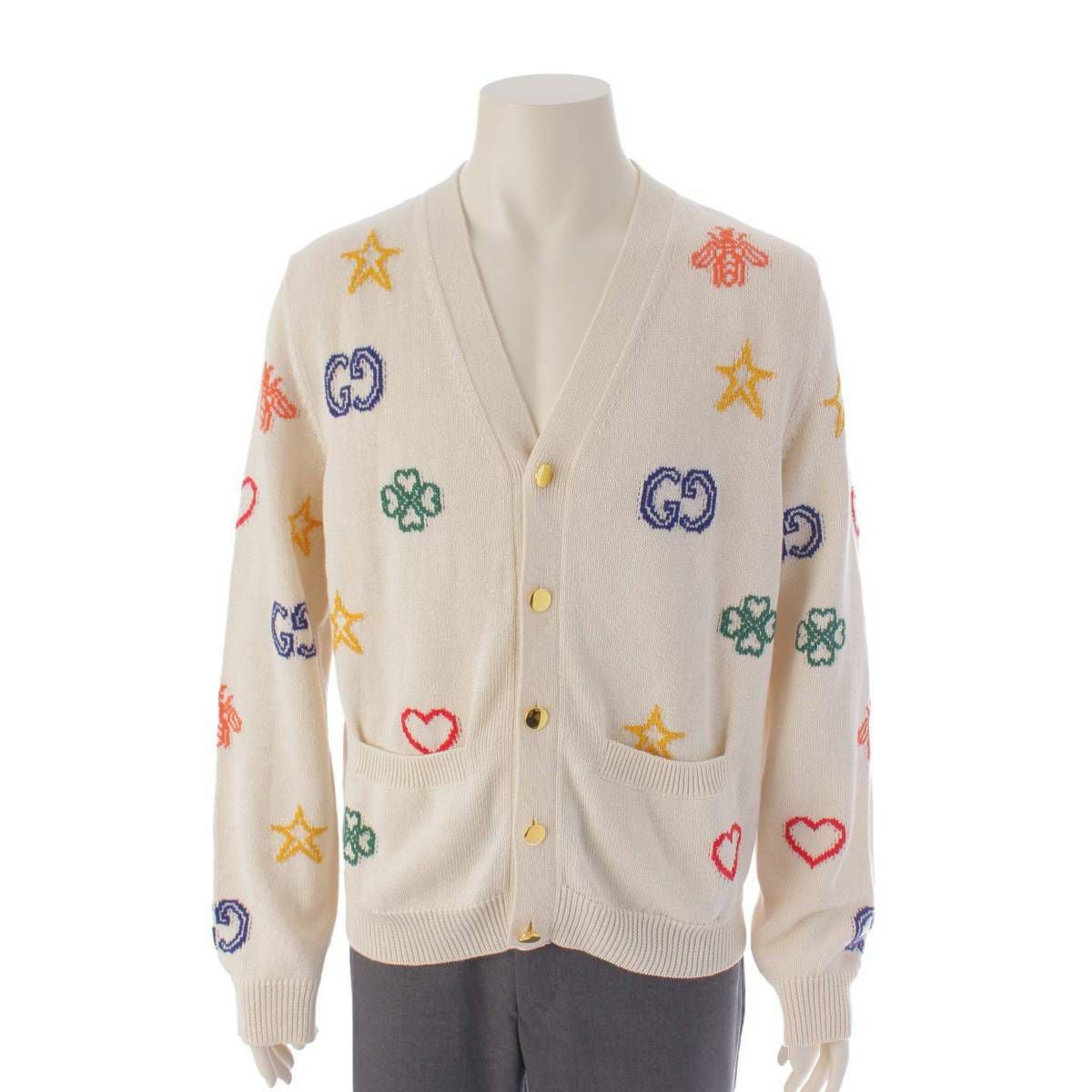 【グッチ】Gucci メンズ シンボルズ ジャガード ニット リネン×コットン カーディガン アイボリー L 【中古】【鑑定済・正規品保証】199626