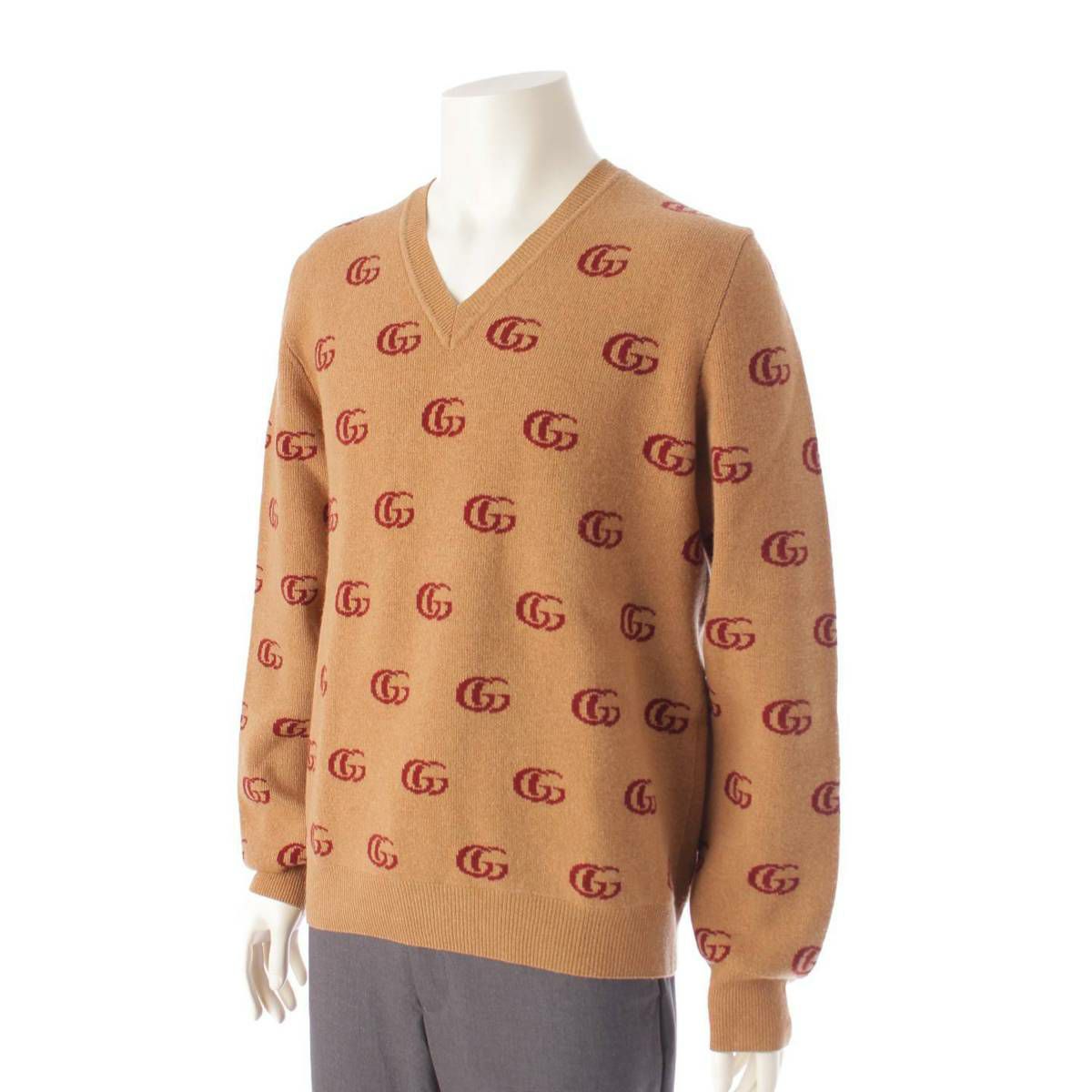 グッチ メンズ GGインターロッキング Vネック ニット セーター 645292 ブラウン L