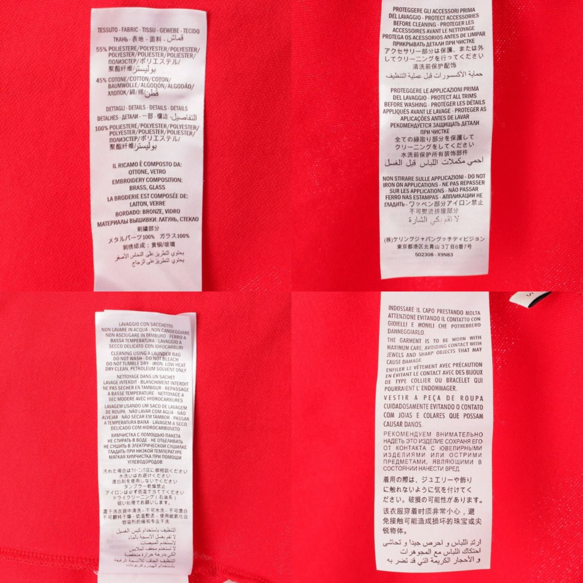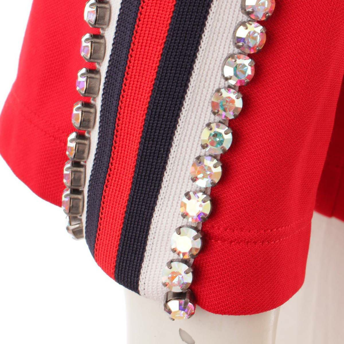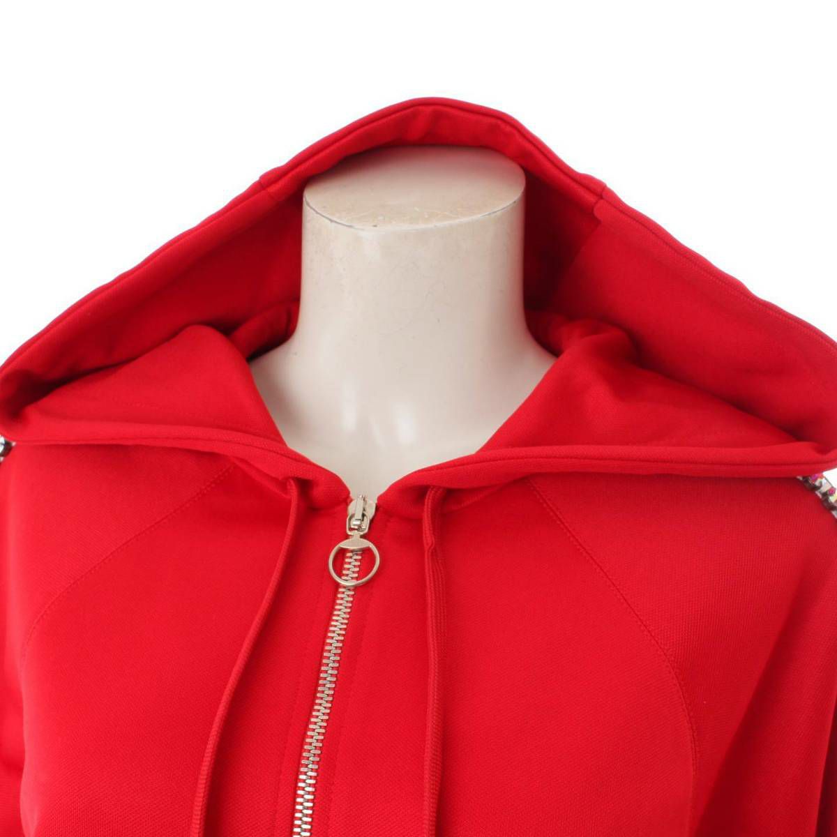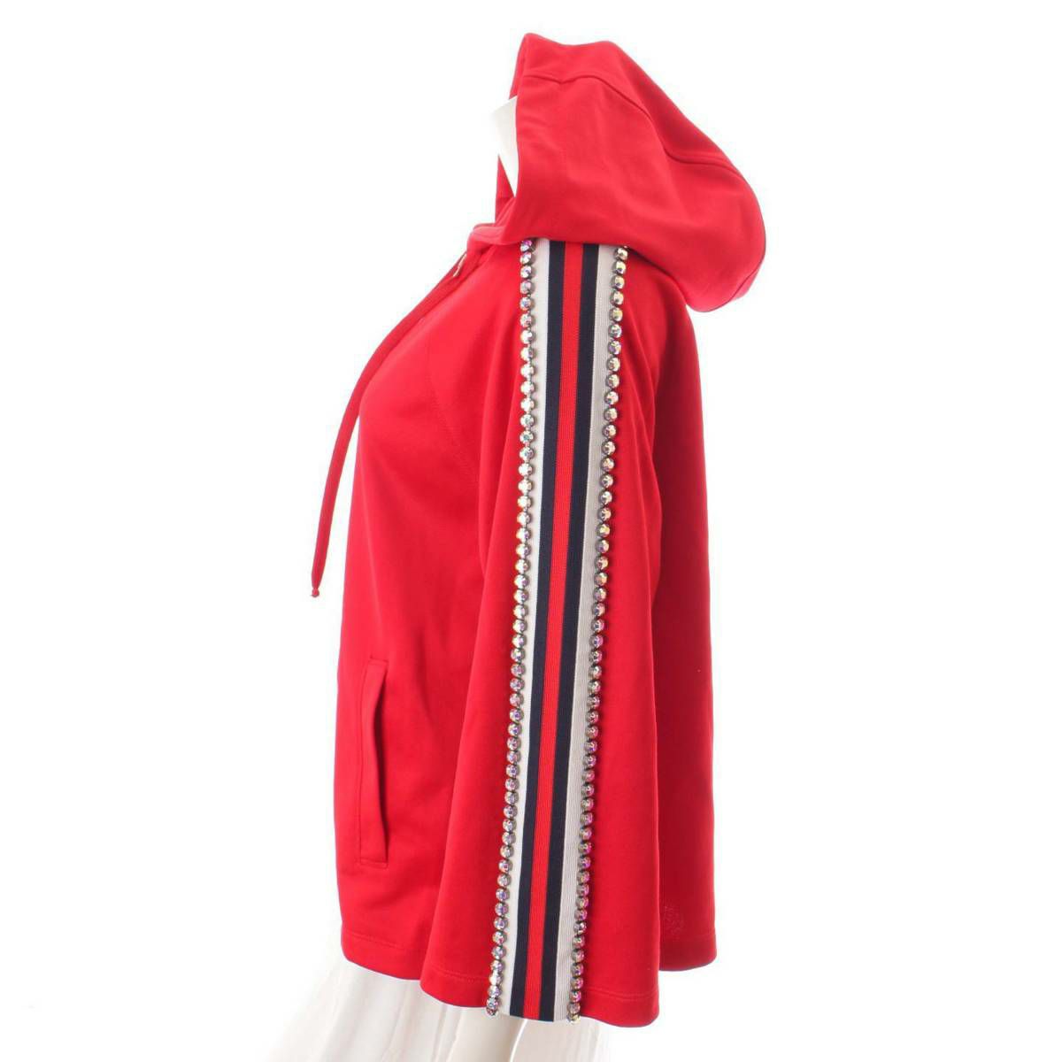 グッチ(Gucci) クリスタル フーディー スウェットシャツ ビジュー ライン パーカー 502308 レッド S