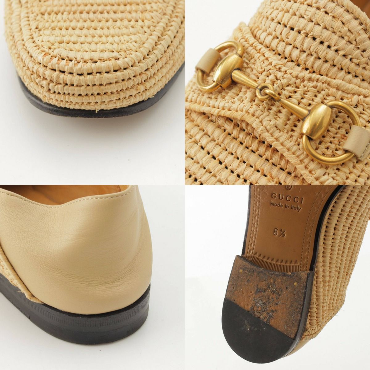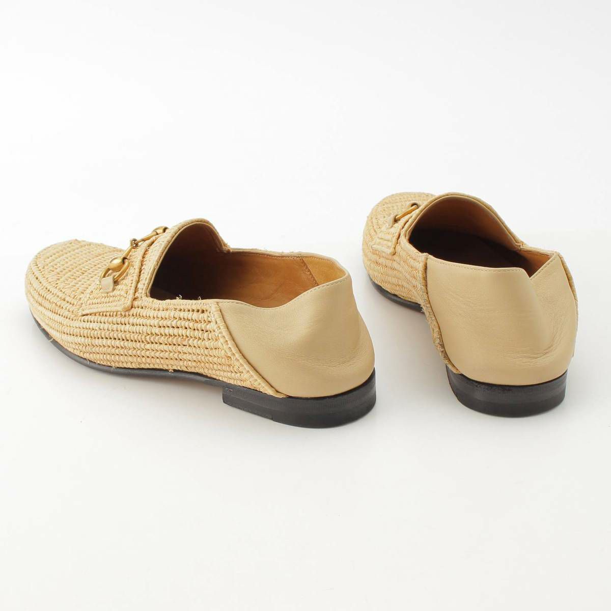 グッチ ホースビット ラフィア ローファー シューズ 528459 ベージュ 6 1/2