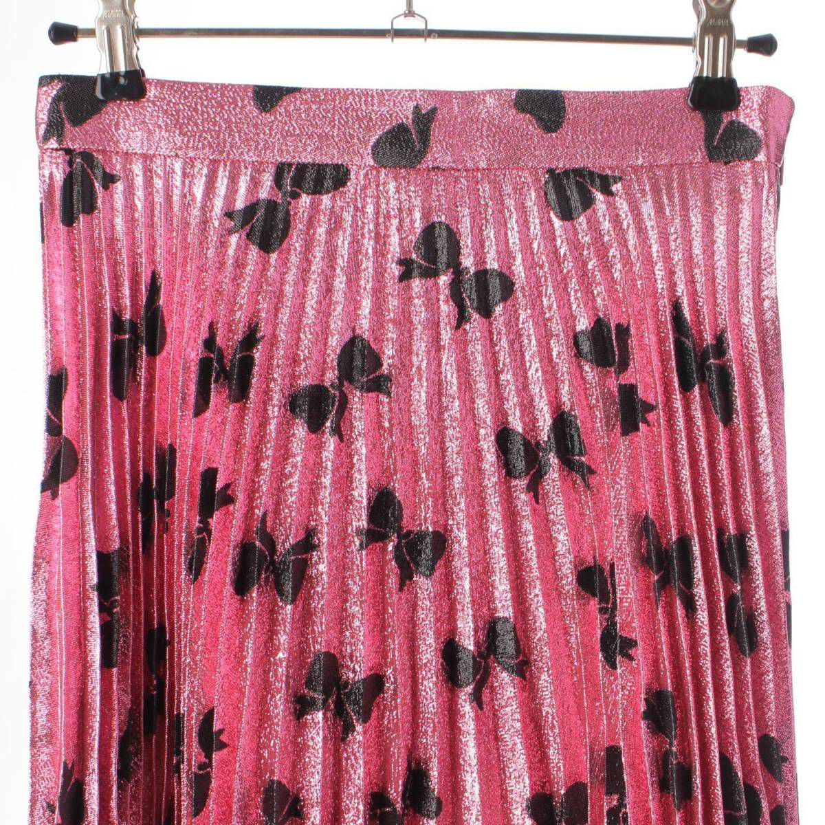 グッチ Gucci シルク混 リボン 総柄 プリーツ ロングスカート 436174 ピンク 36