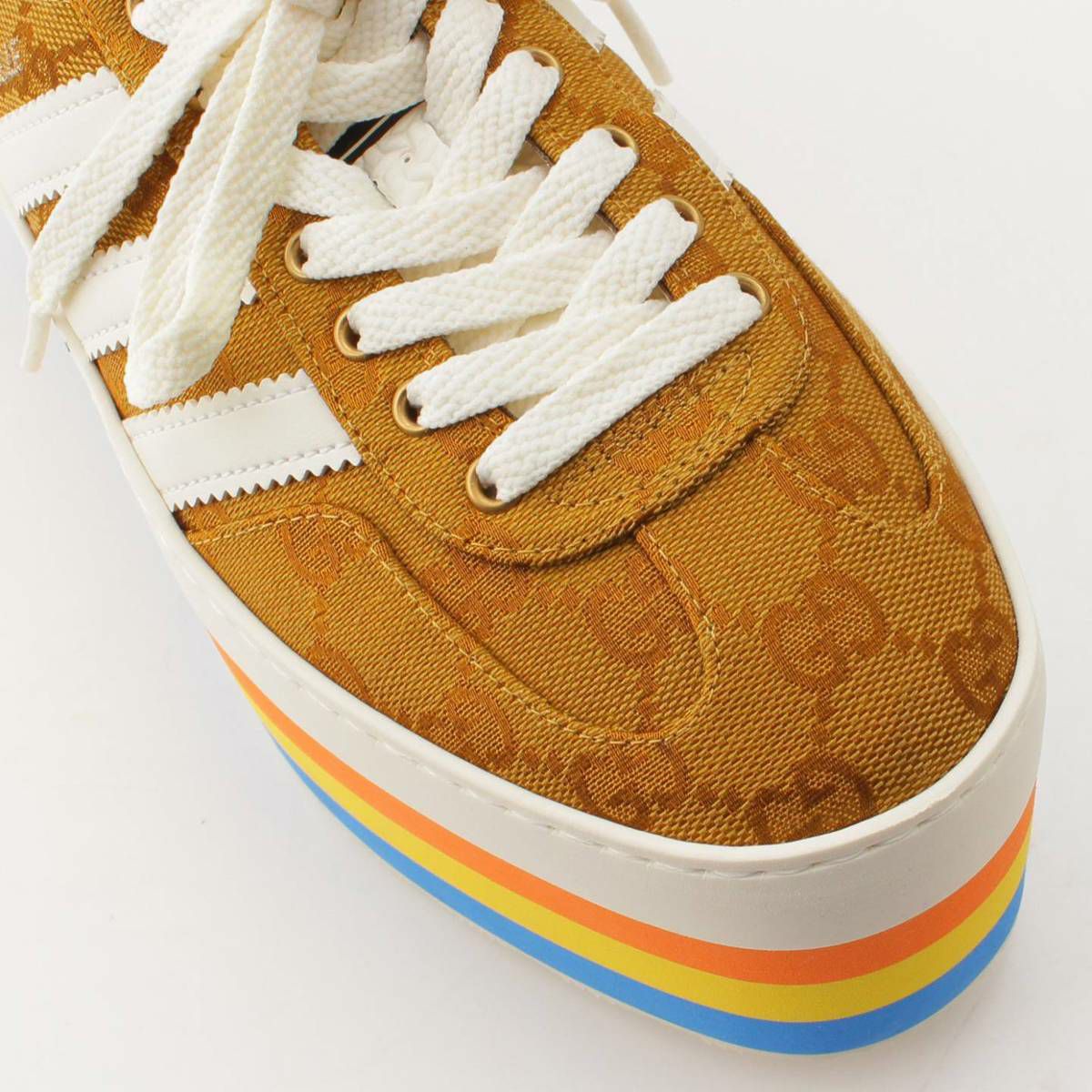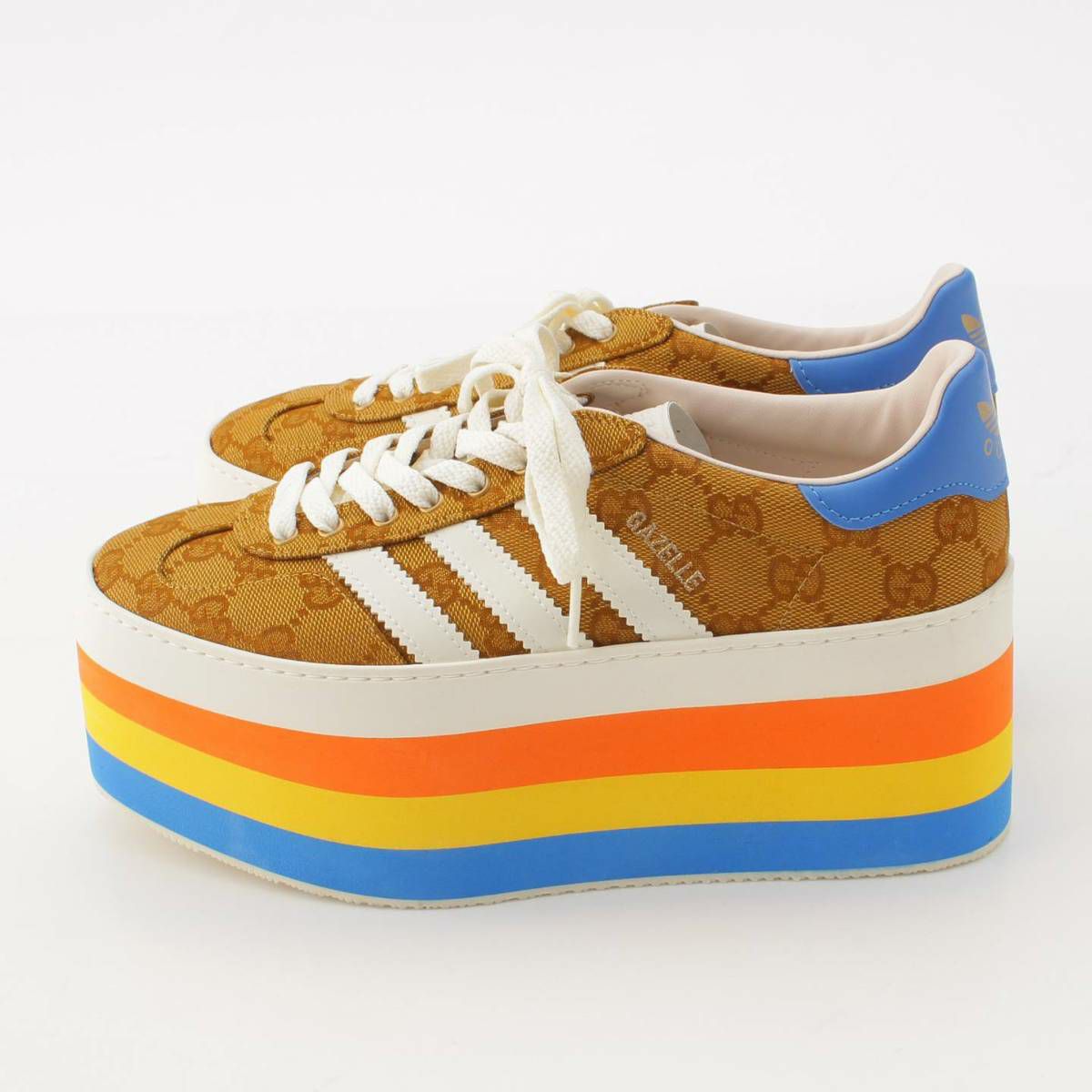グッチ Gucci アディダスコラボ ガゼル GGキャンバス 厚底 スニーカー 707873 ブラウン 23.5cm