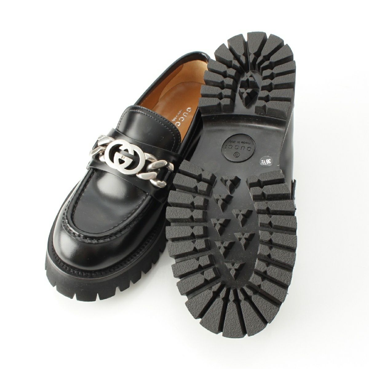 他の画像を見る GUCCI グッチ レザー インターロッキングGG チャンキーヒール ローファー ラグソール シューズ 752650 ブラック シルバー金具 38 1/2 在庫切れ お気に入りに登録する 当店特別価格 ¥ 42,900 税込 円 39,000円