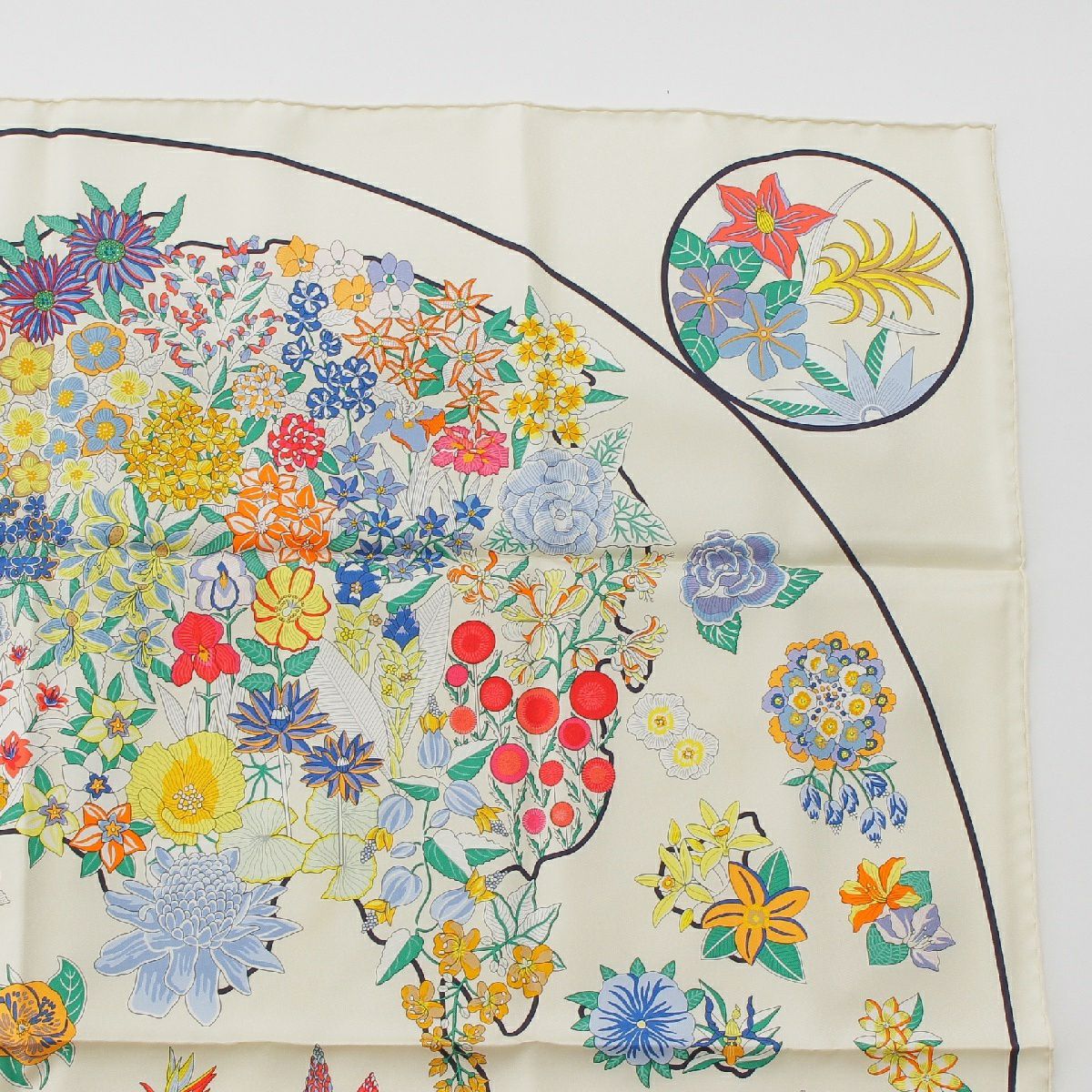 エルメス 24年 カレ90 シルク PLANIFLEURS プラニフルール スカーフ スカーフ 小物 ホワイト