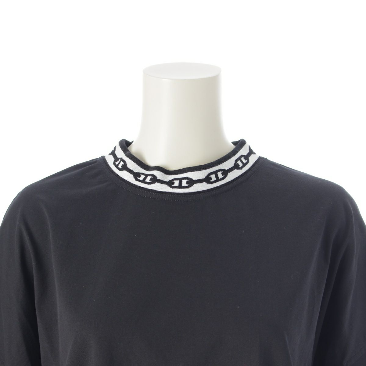 エルメス 21年 コットン シェーヌダンクル 半袖 ワンピース ドレス ブラック 40