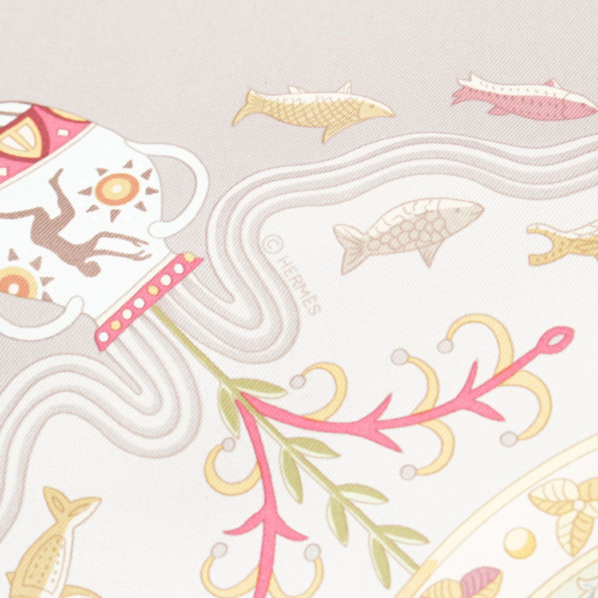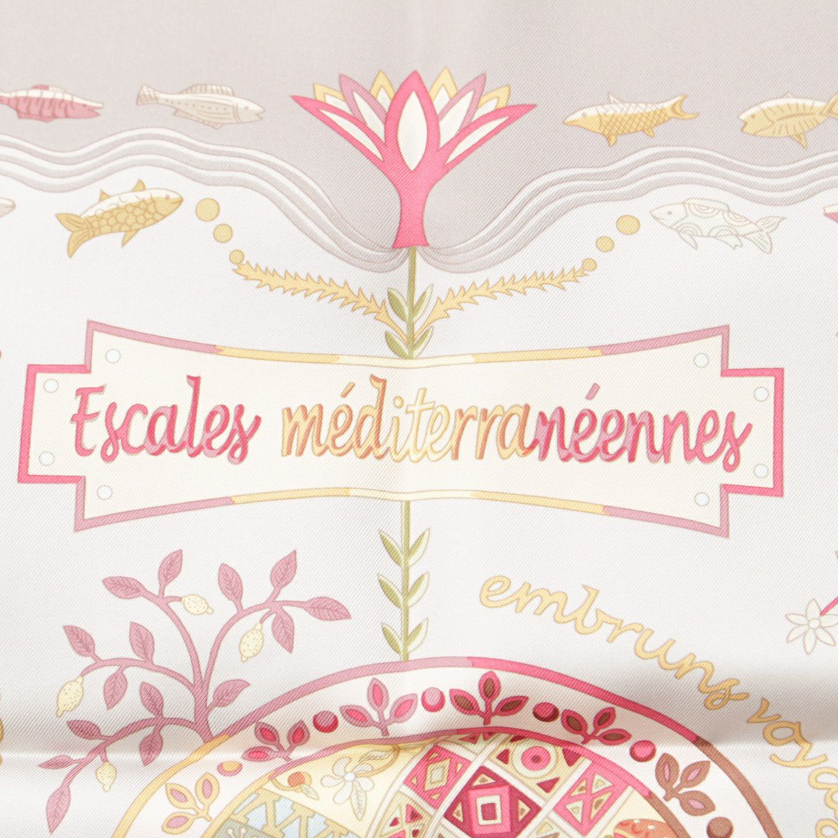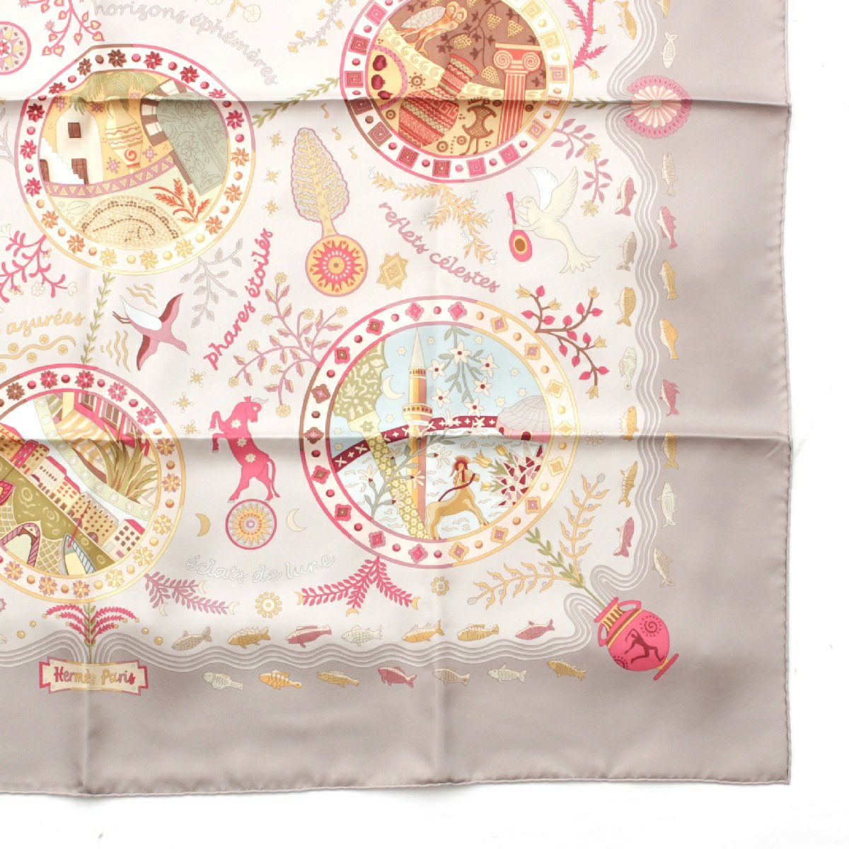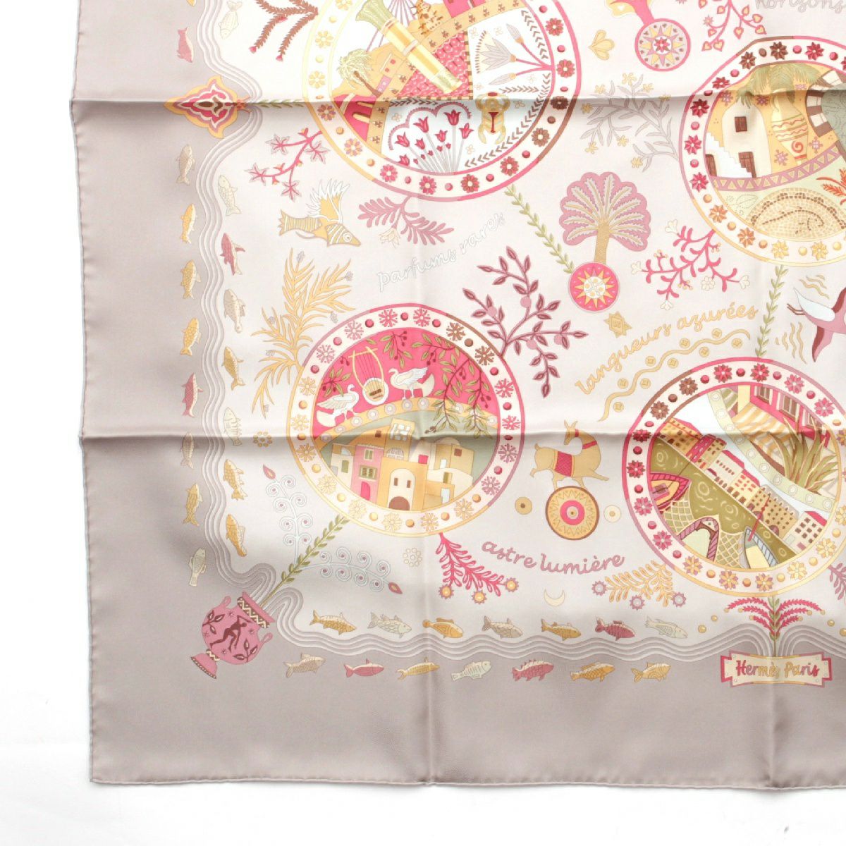 エルメス シルク カレ90 Escales mediterraneennes 地中海の港町 スカーフ グレー
