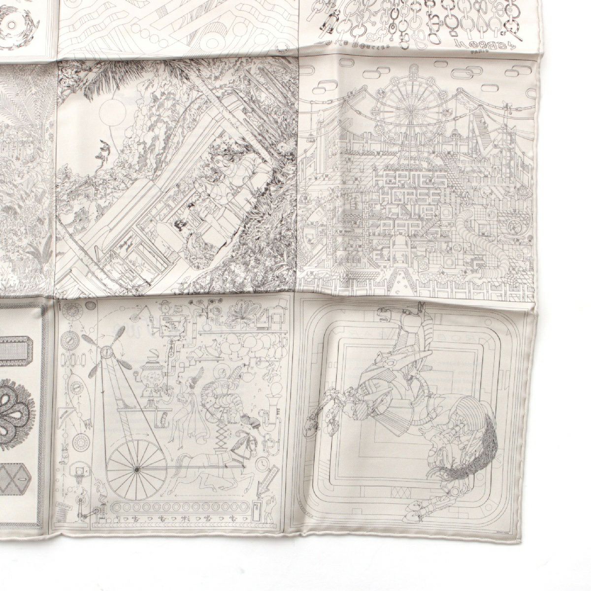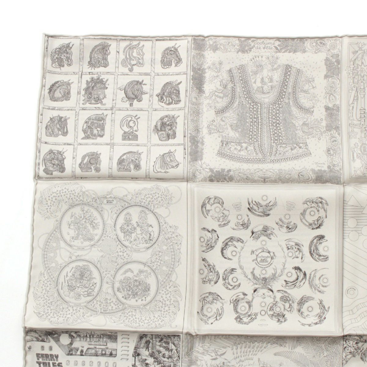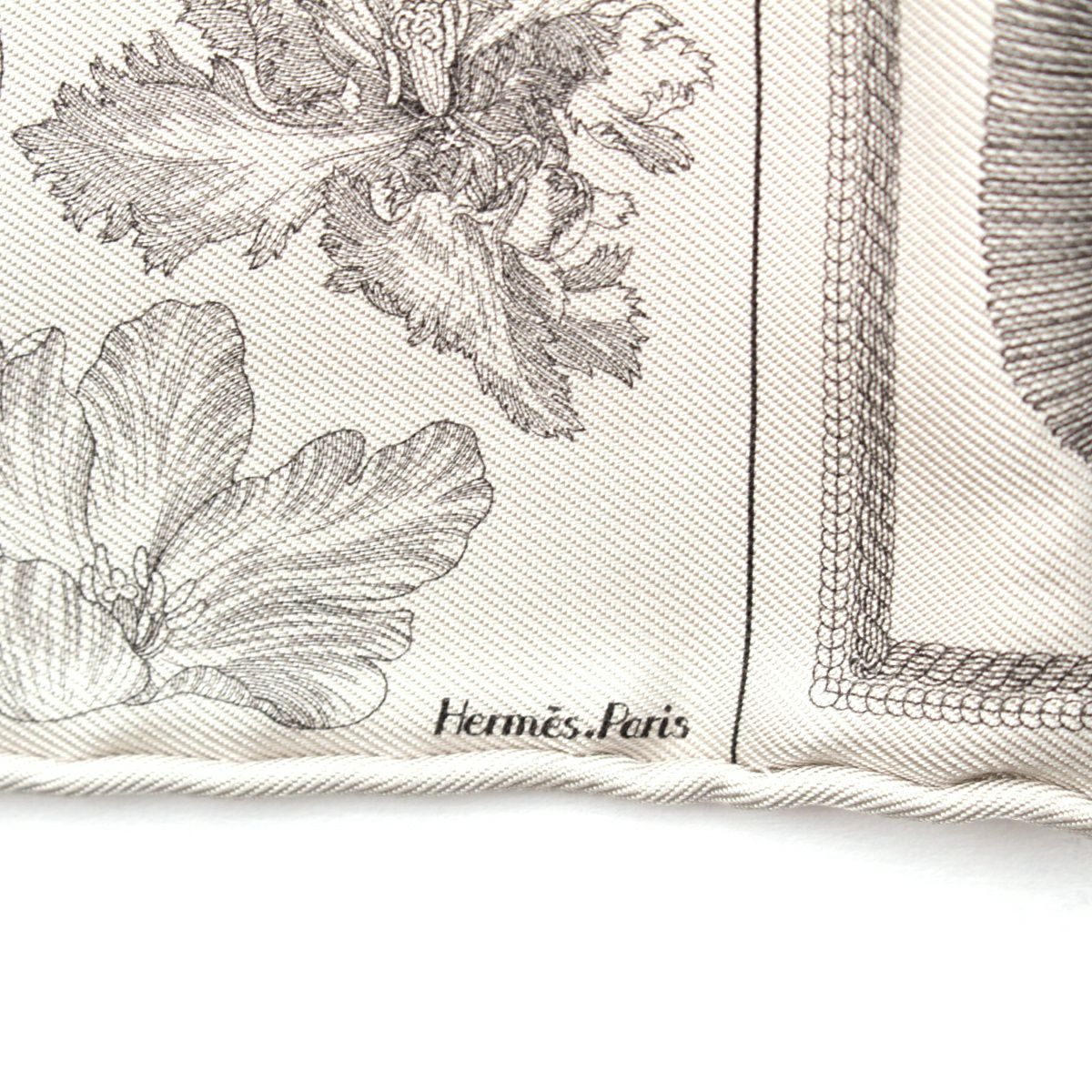 エルメス 23年 カレ60 シルク ダブルフェイス ロボカバール スカーフ イヤーズギフト ノベルティ ホワイト グレー