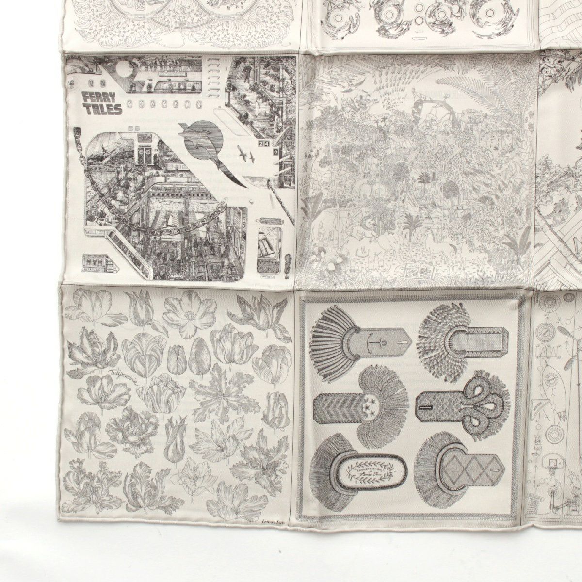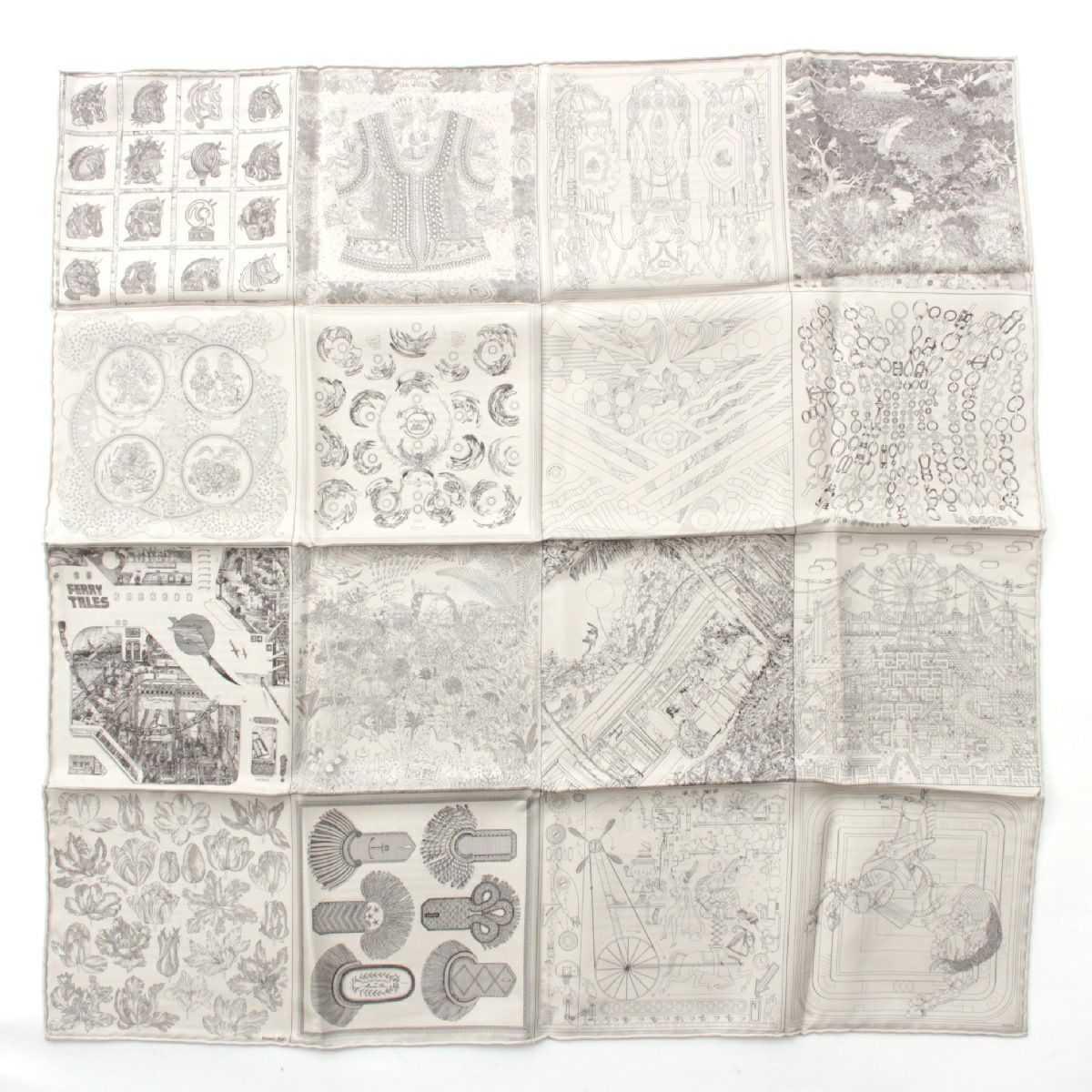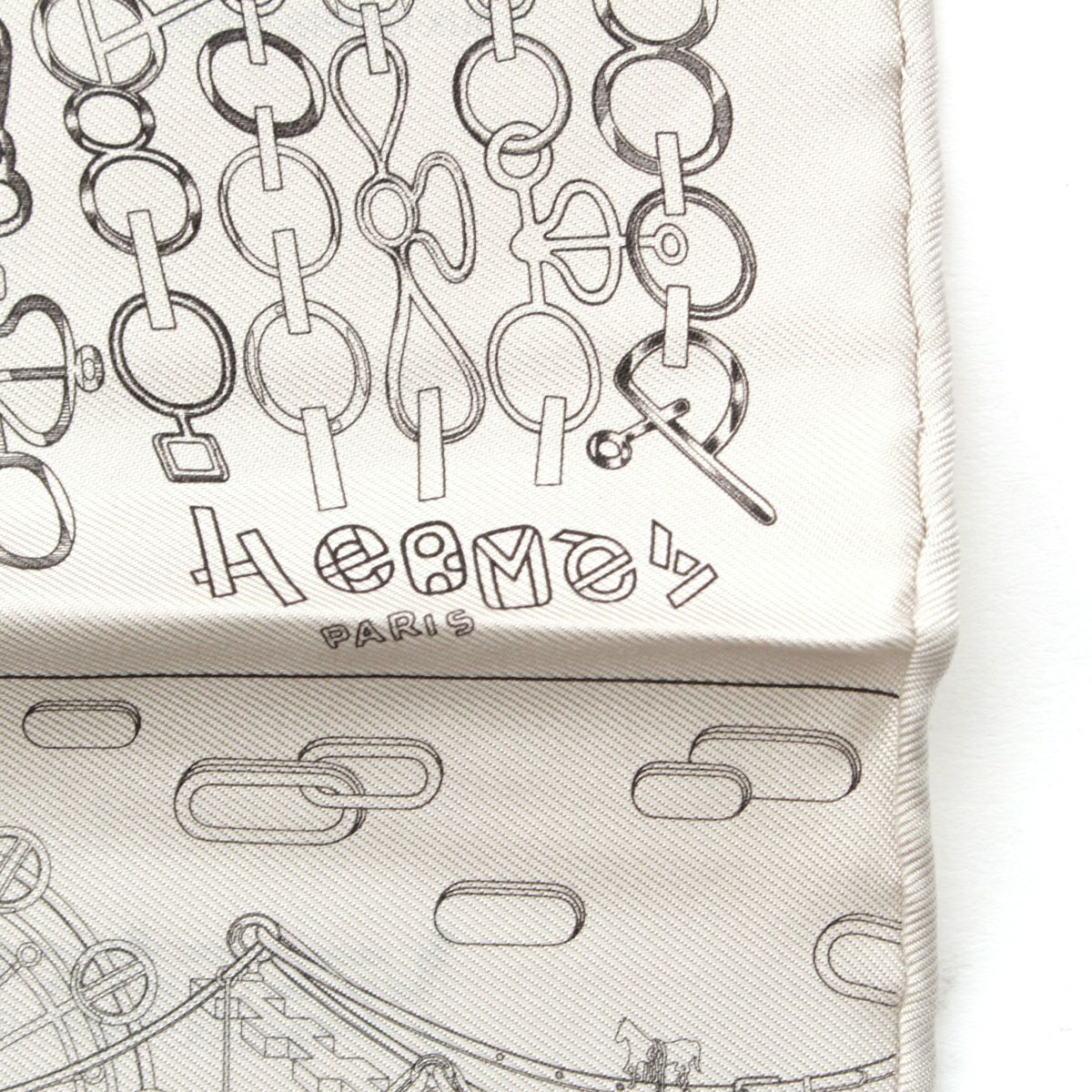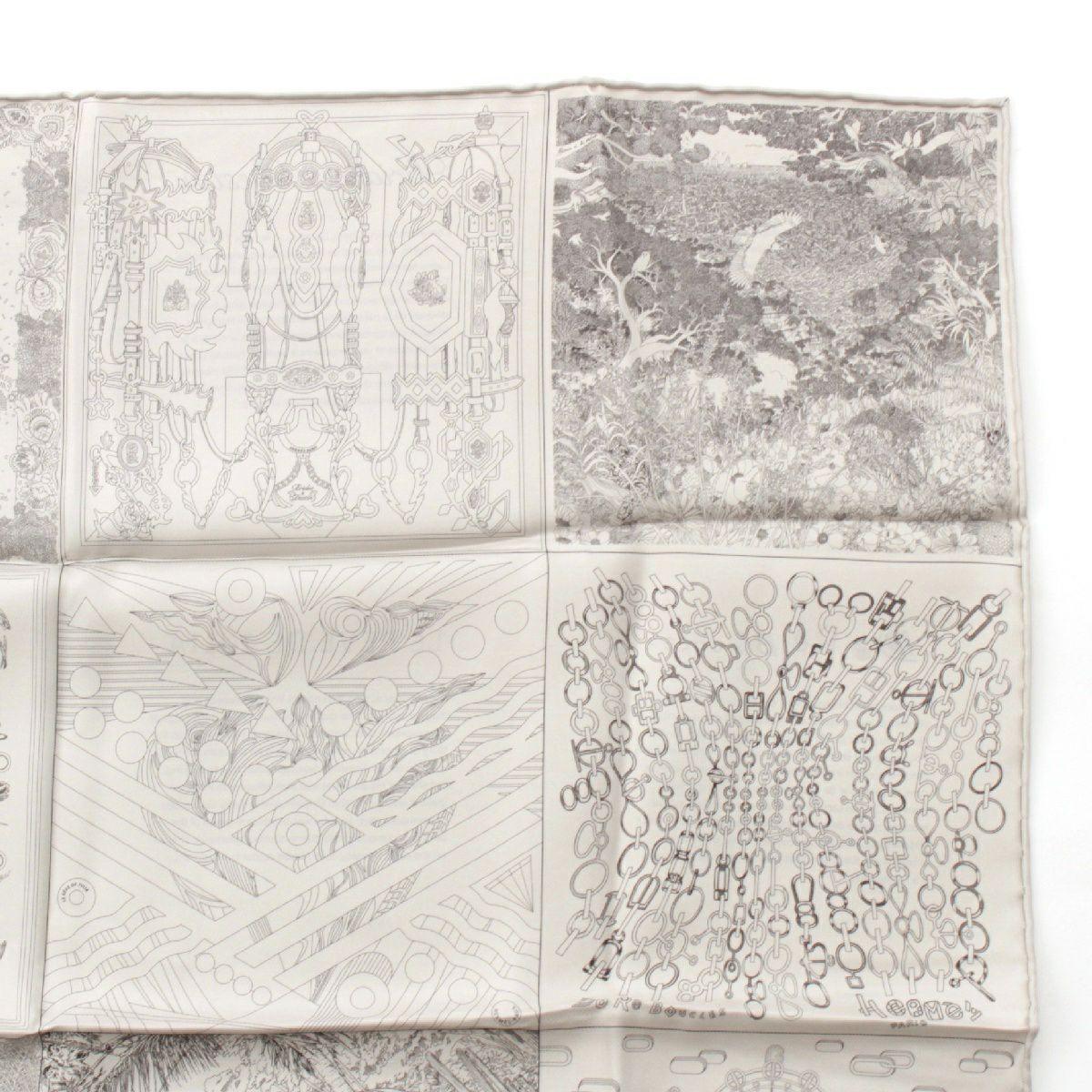 エルメス 23年 カレ60 シルク ダブルフェイス ロボカバール スカーフ イヤーズギフト ノベルティ ホワイト グレー