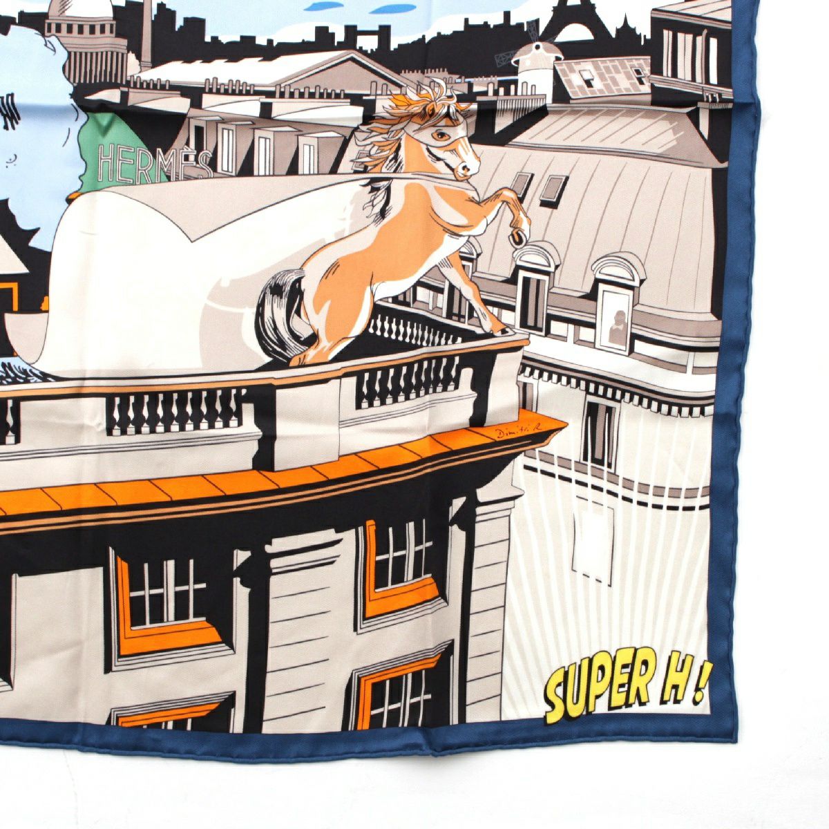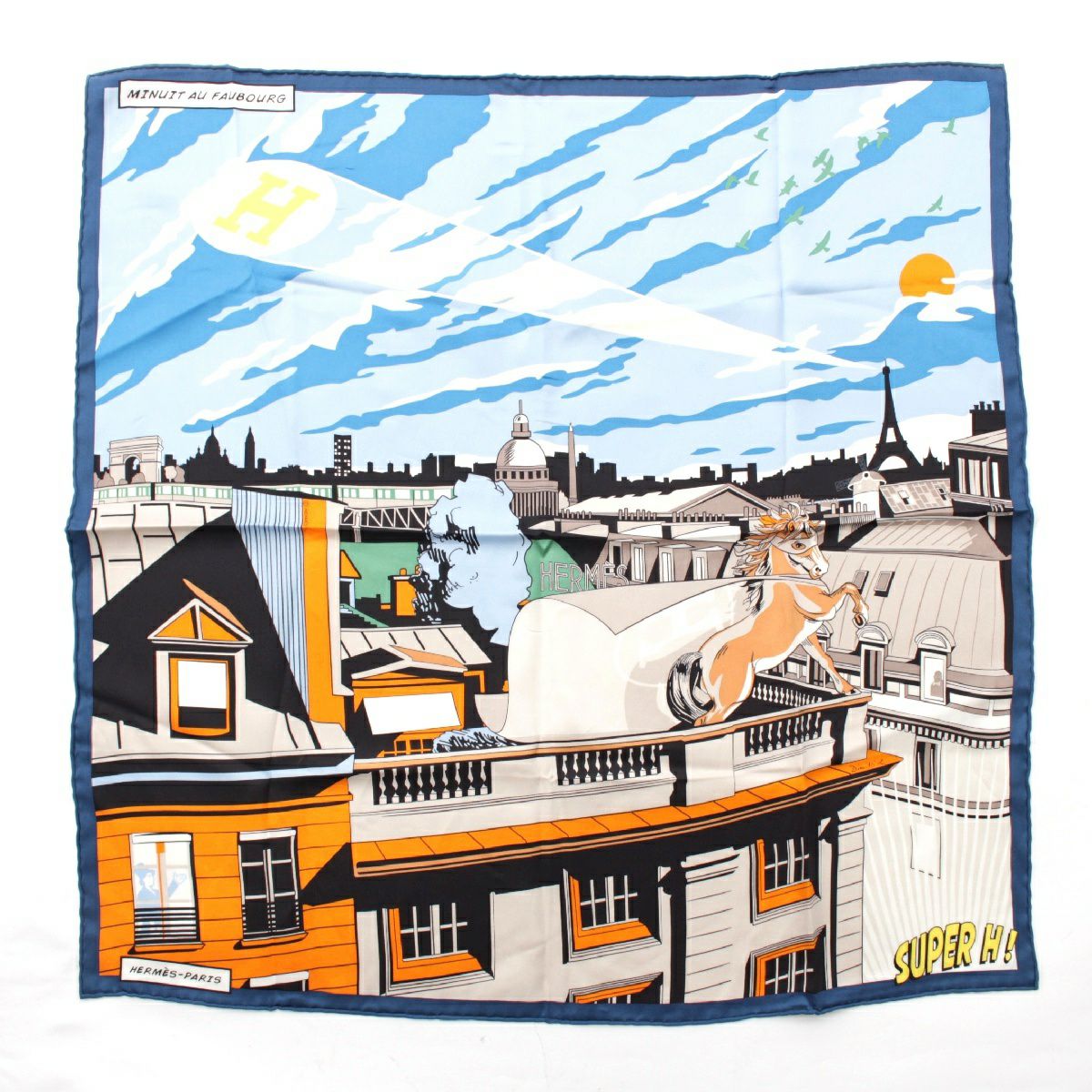 エルメス カレ 70 シルク Minuit au Faubourg ミッドナイト フォーブル スーパーH スカーフ ホース 馬 ブルー
