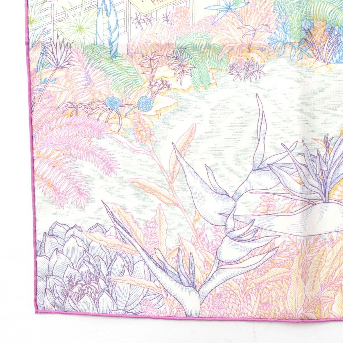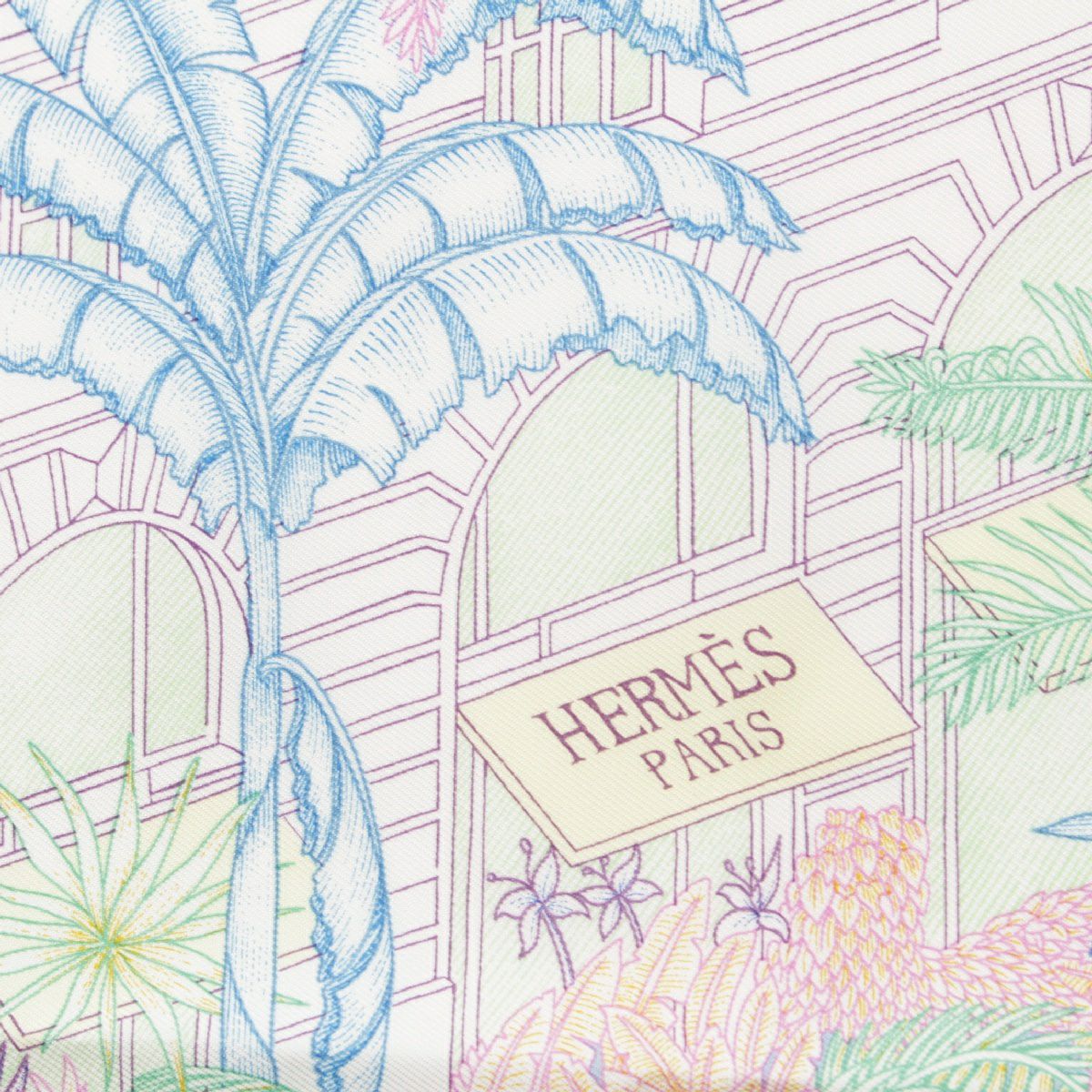 エルメス カレ45 シルク フォーブル トロピカル ディティール faubourg toropical detail スカーフ 観葉植物 南国柄 ハンカチ マルチカラー ホワイト