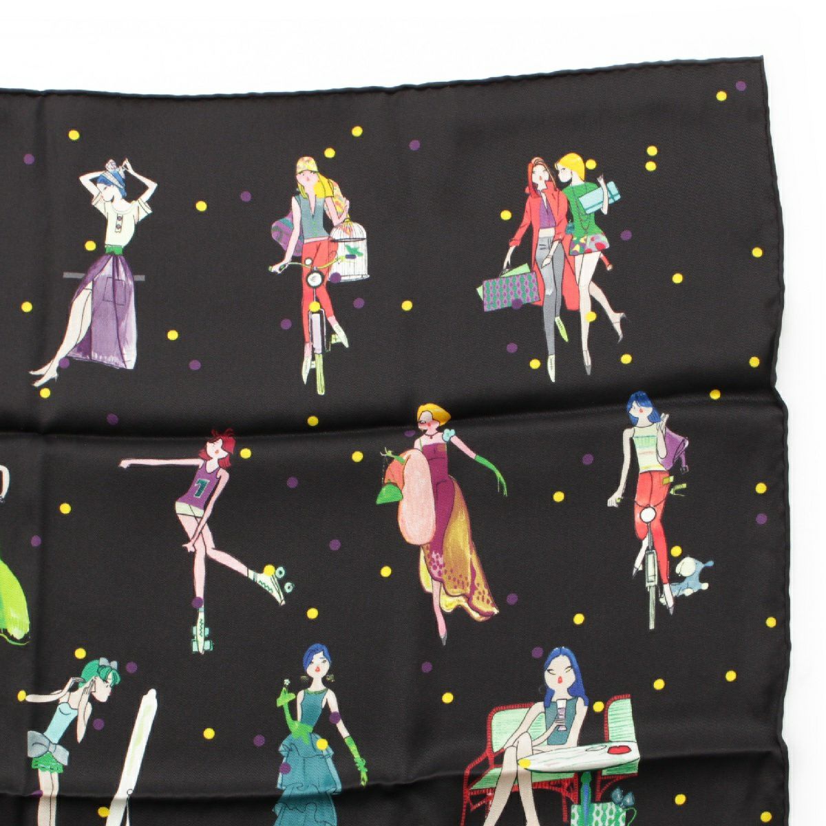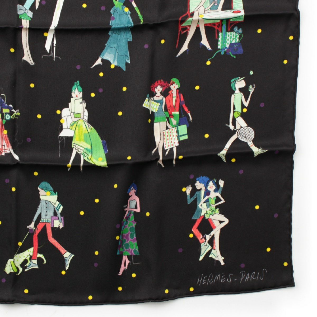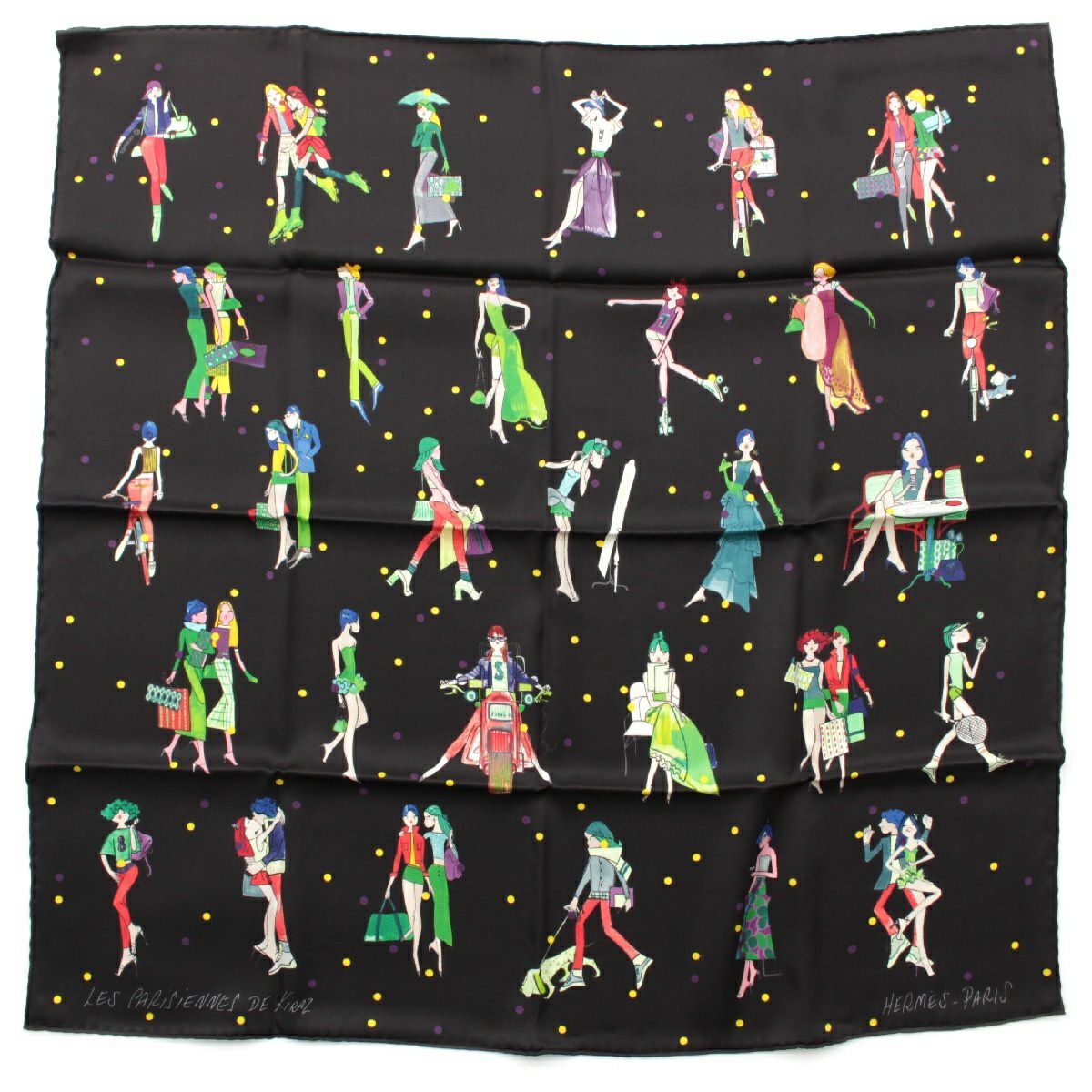 エルメス カレ70 LES PARISIENNES DE KIRAZ シルク パリジェンヌ スカーフ スカーフ ブラック
