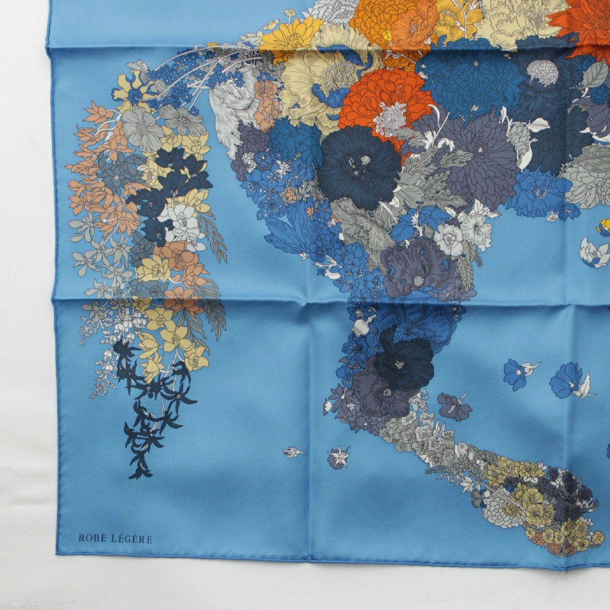 エルメス シルク カレ90 Robe Legere ローブレジェール スカーフ ブルー