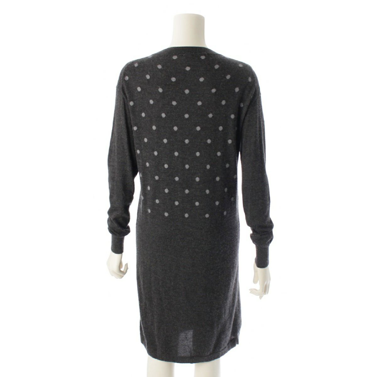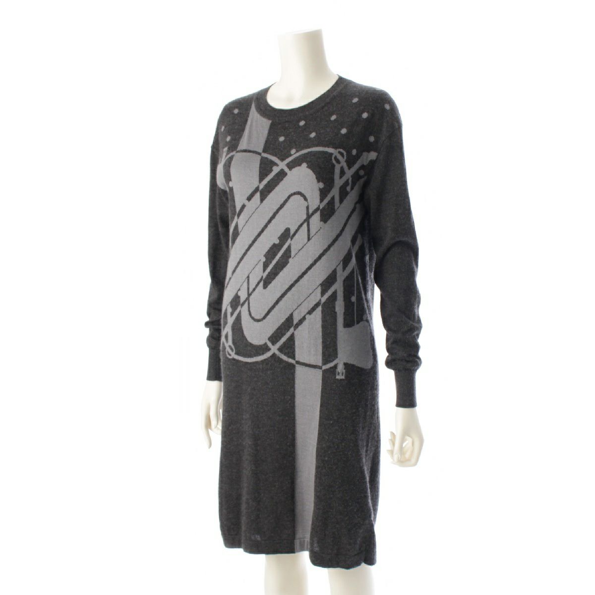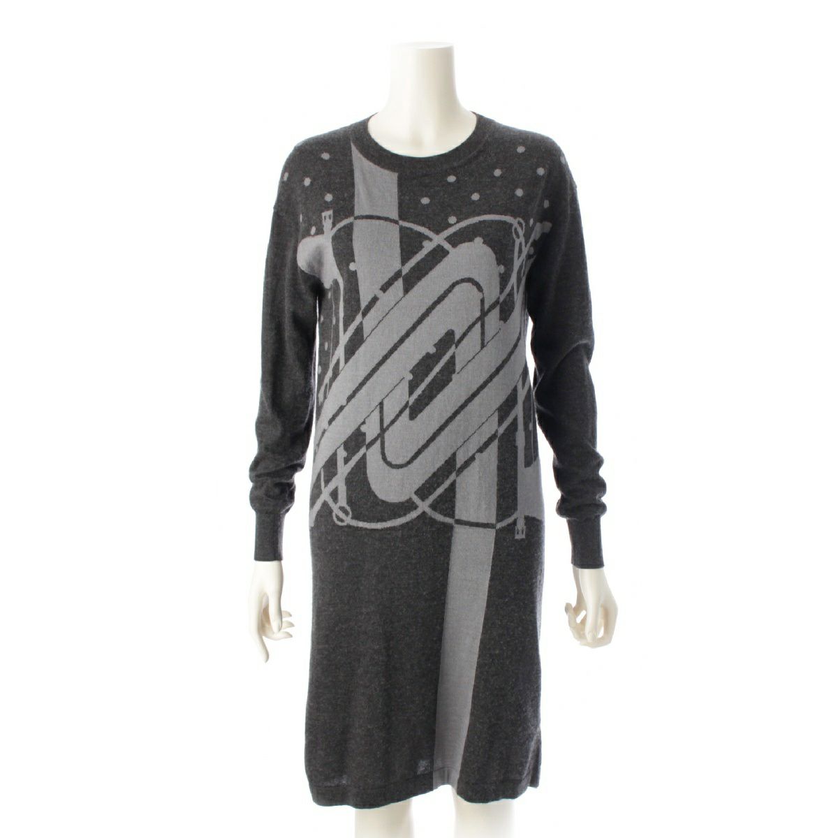 エルメス 21AW カシミヤ シルク クリッククラック ドット柄 ニット ワンピース ひざ丈 ドレス グレー 34