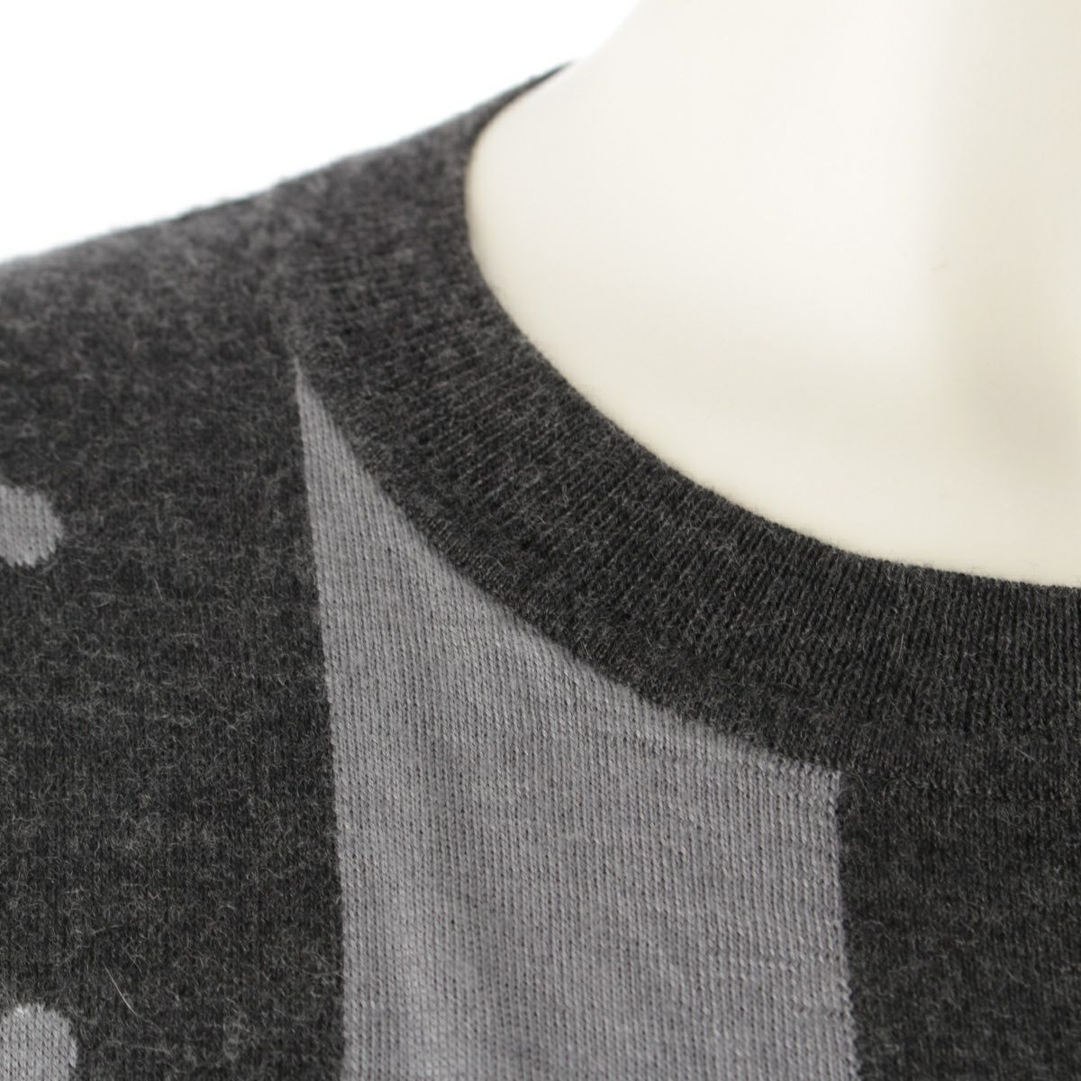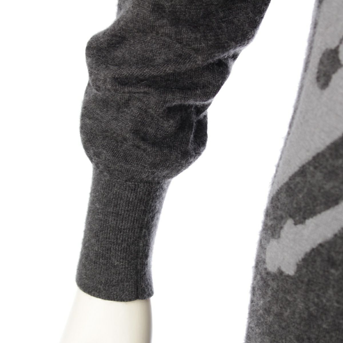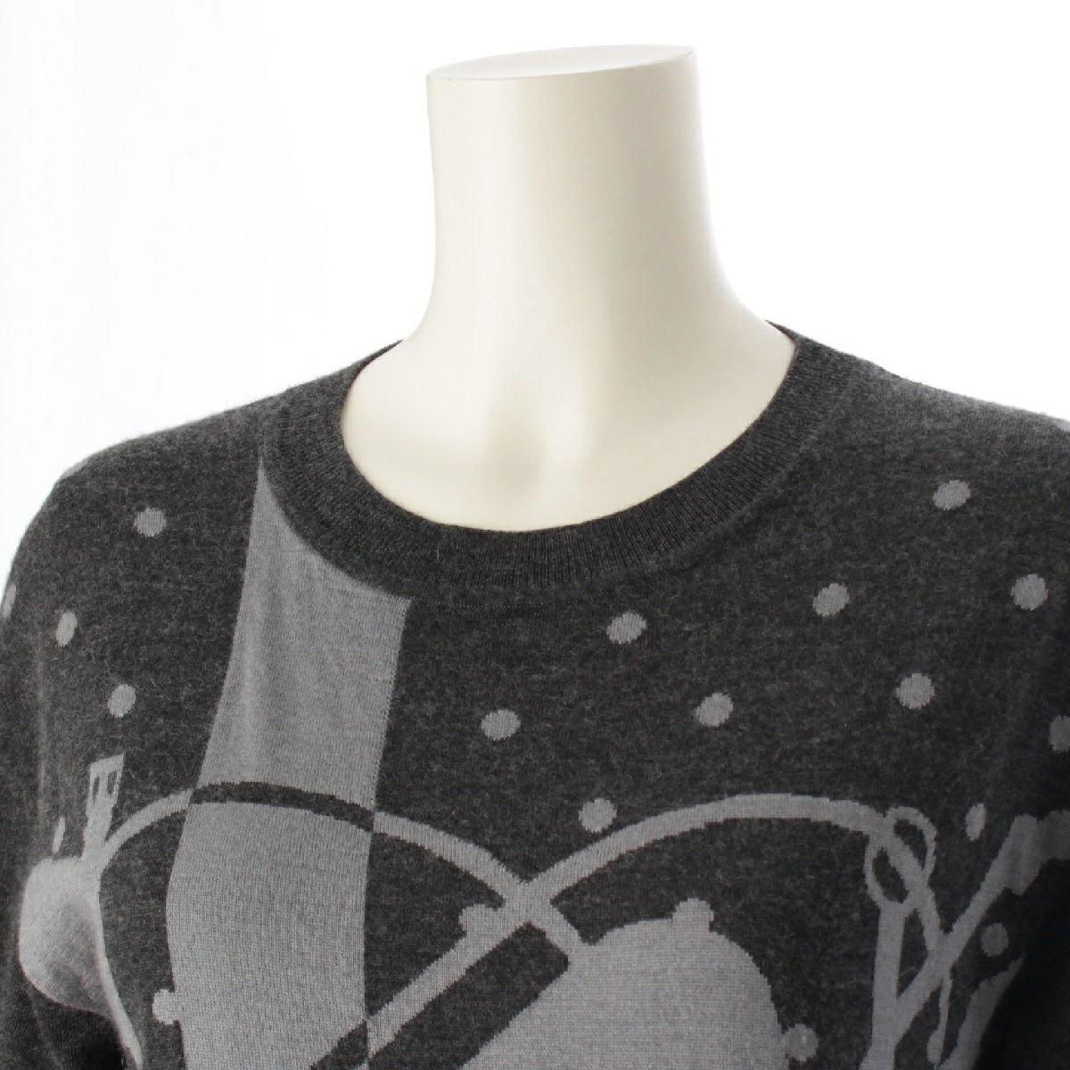 エルメス 21AW カシミヤ シルク クリッククラック ドット柄 ニット ワンピース ひざ丈 ドレス グレー 34