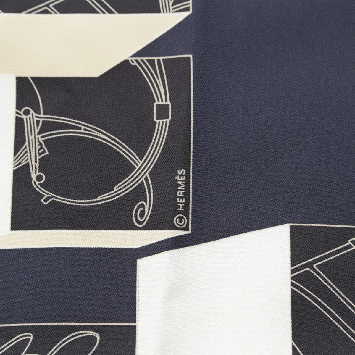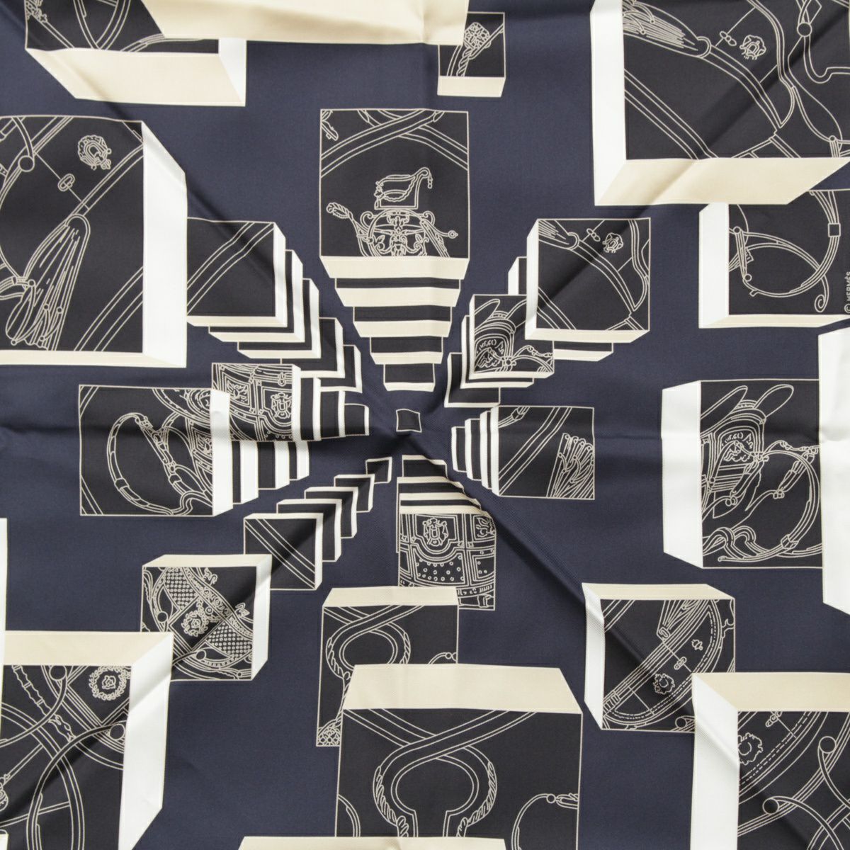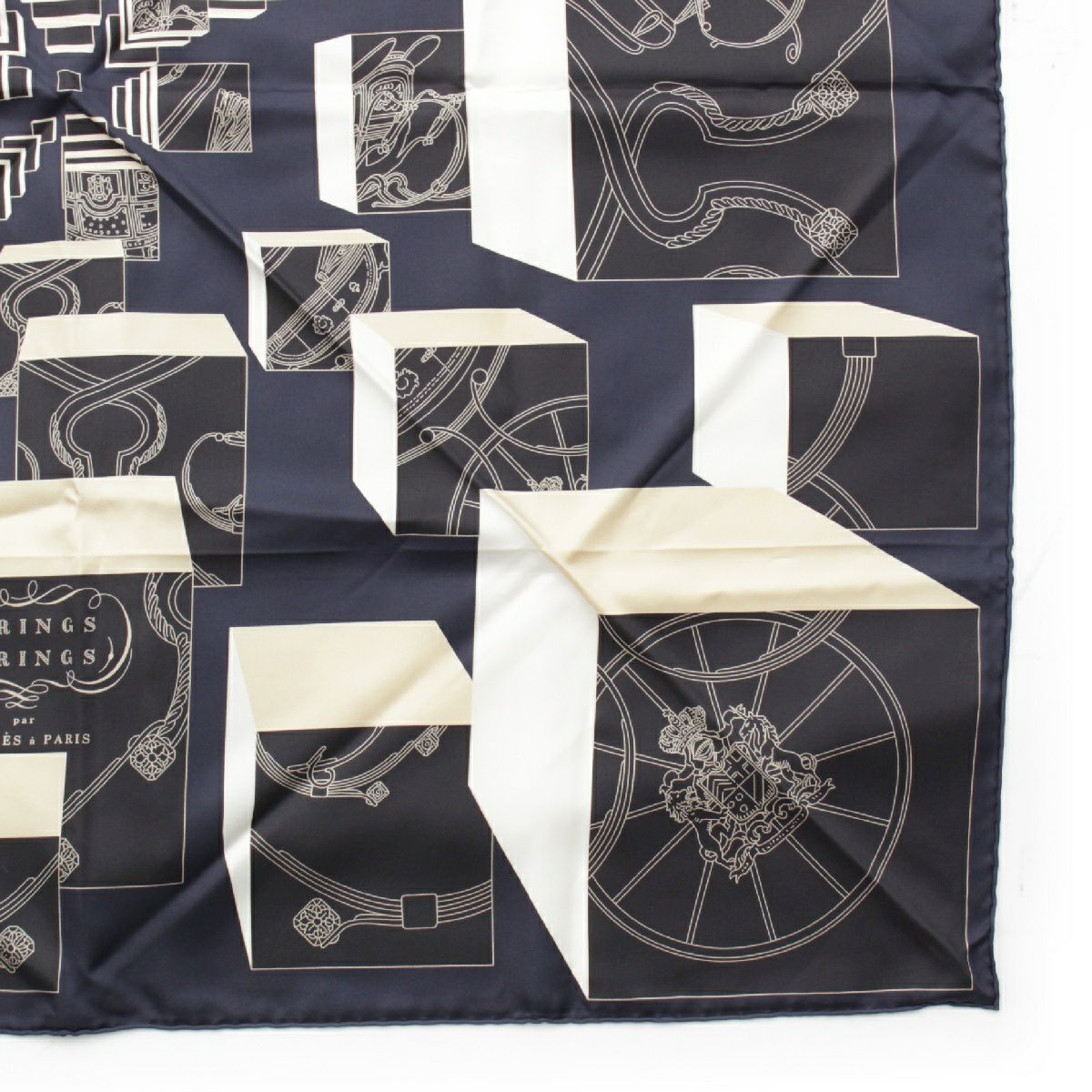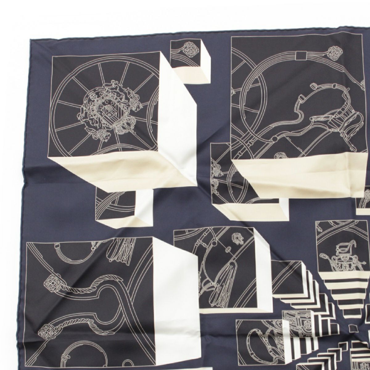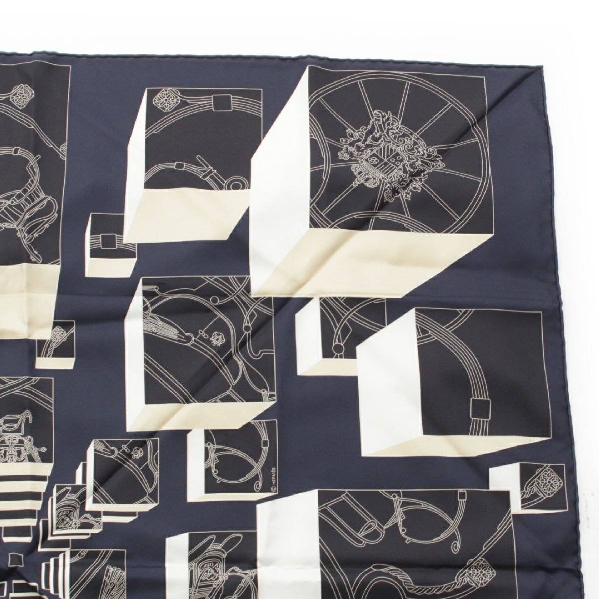 エルメス 22AW カレ90 シルク SPRINGS スプリングス スカーフ 幾何学模様 ネイビー ホワイト系