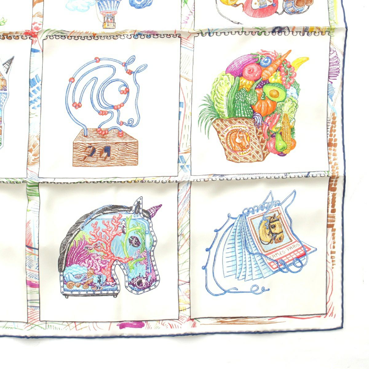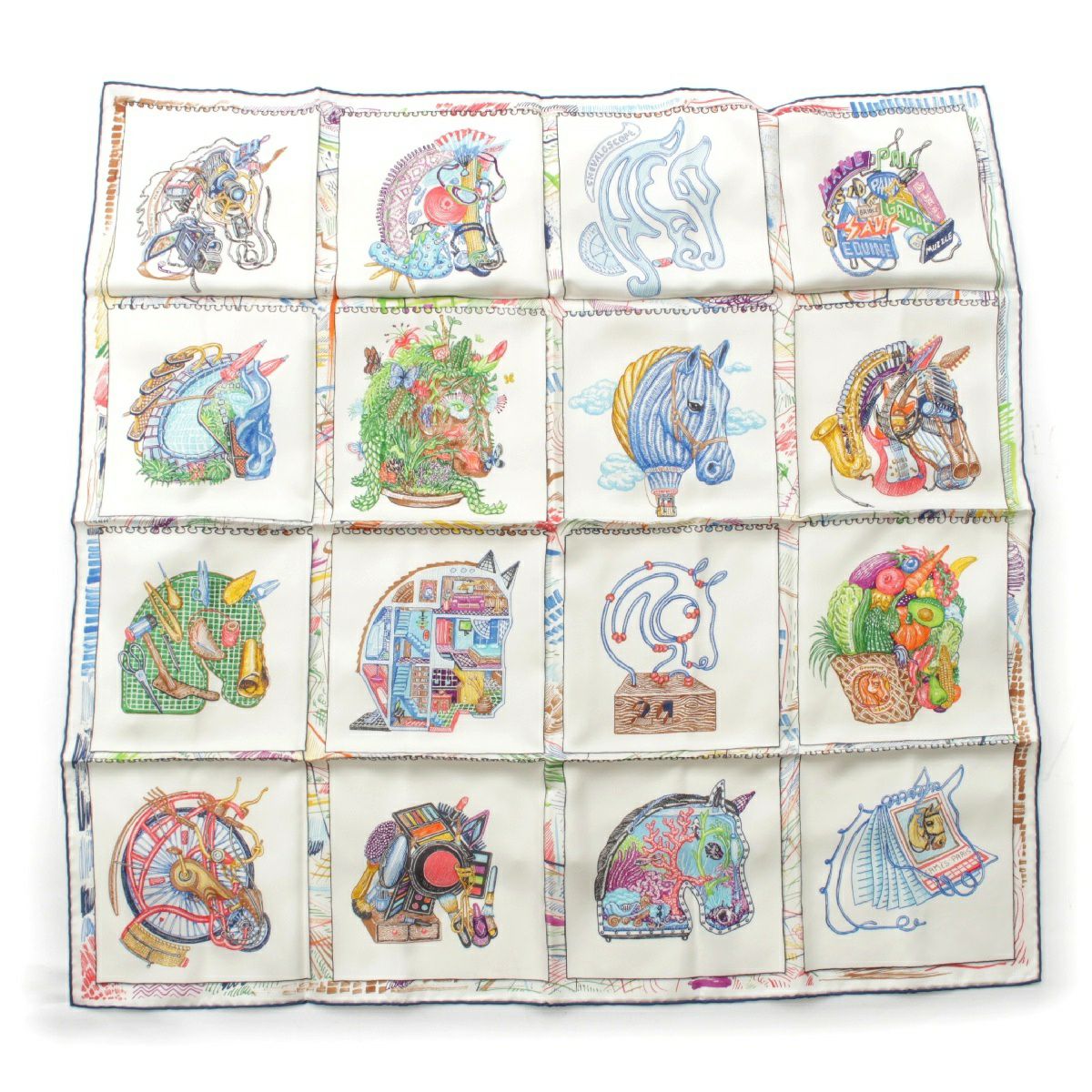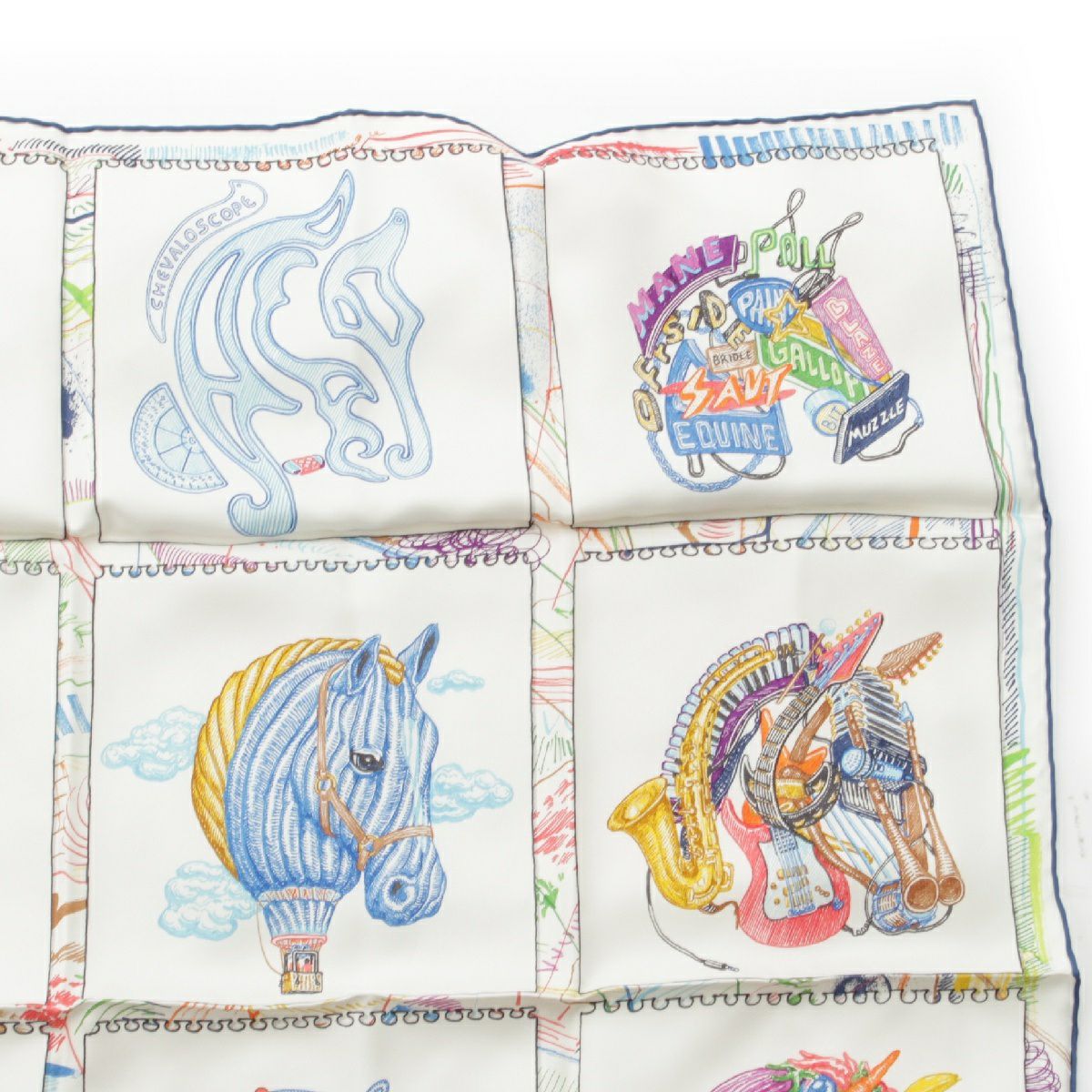エルメス 23SS カレ90 シルク Chevaloscope シュバロスコープ スカーフ ホース 馬 ホワイト マルチカラー