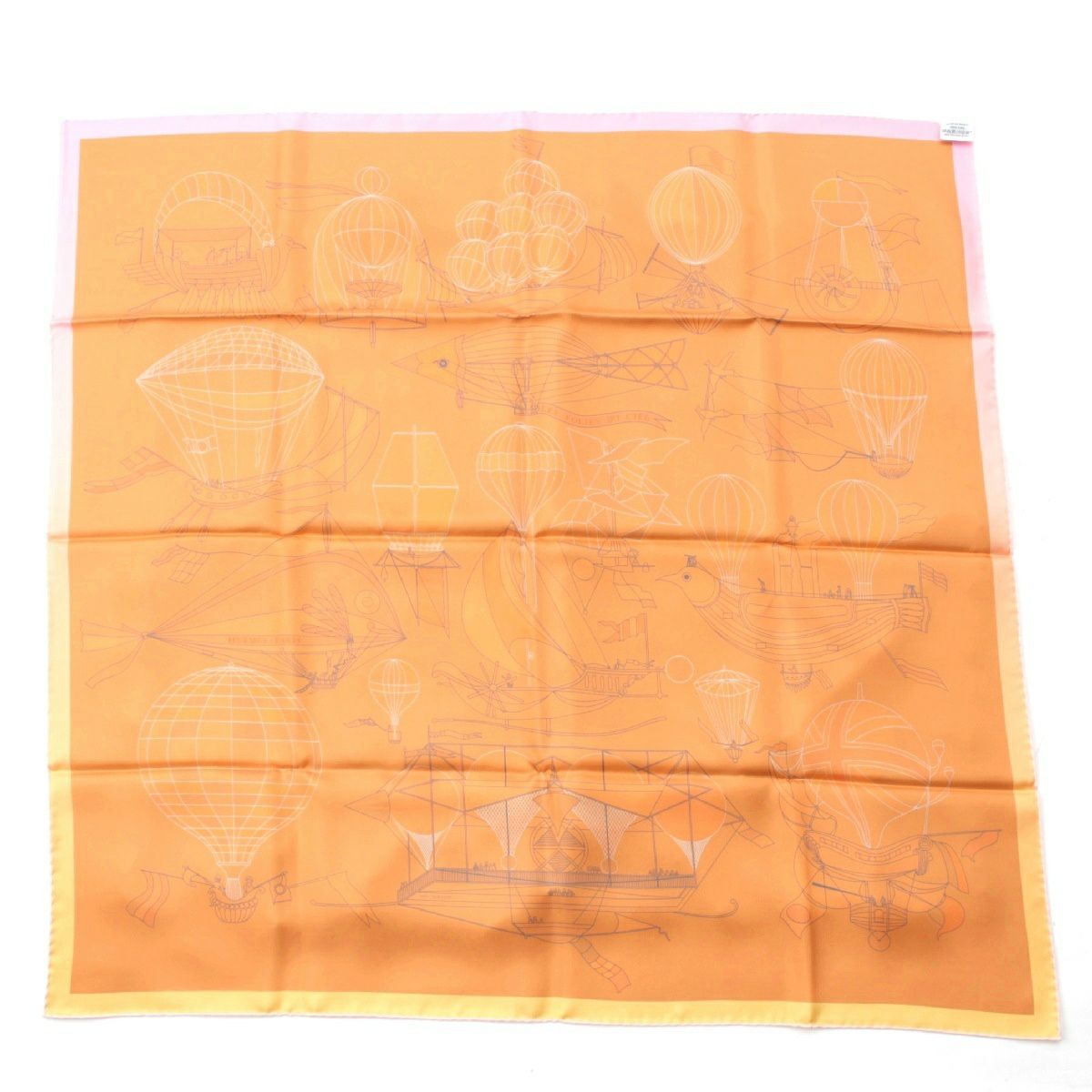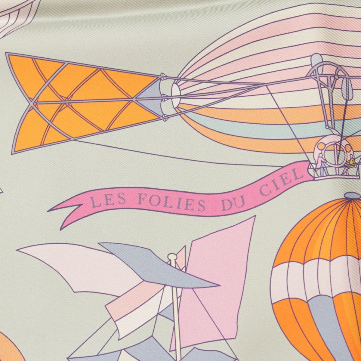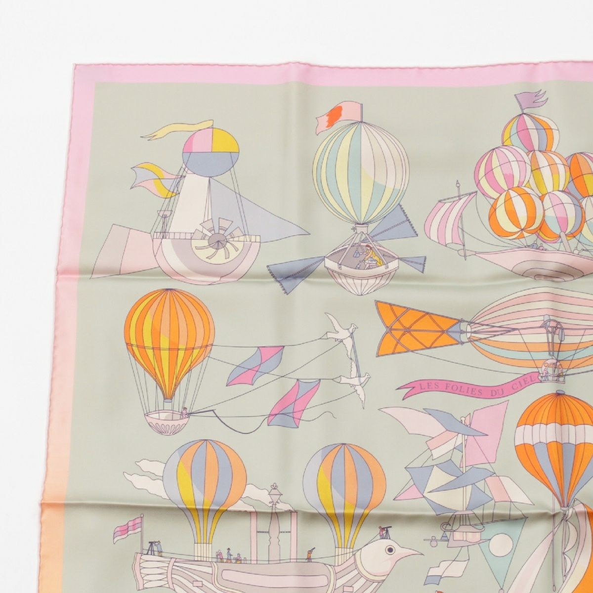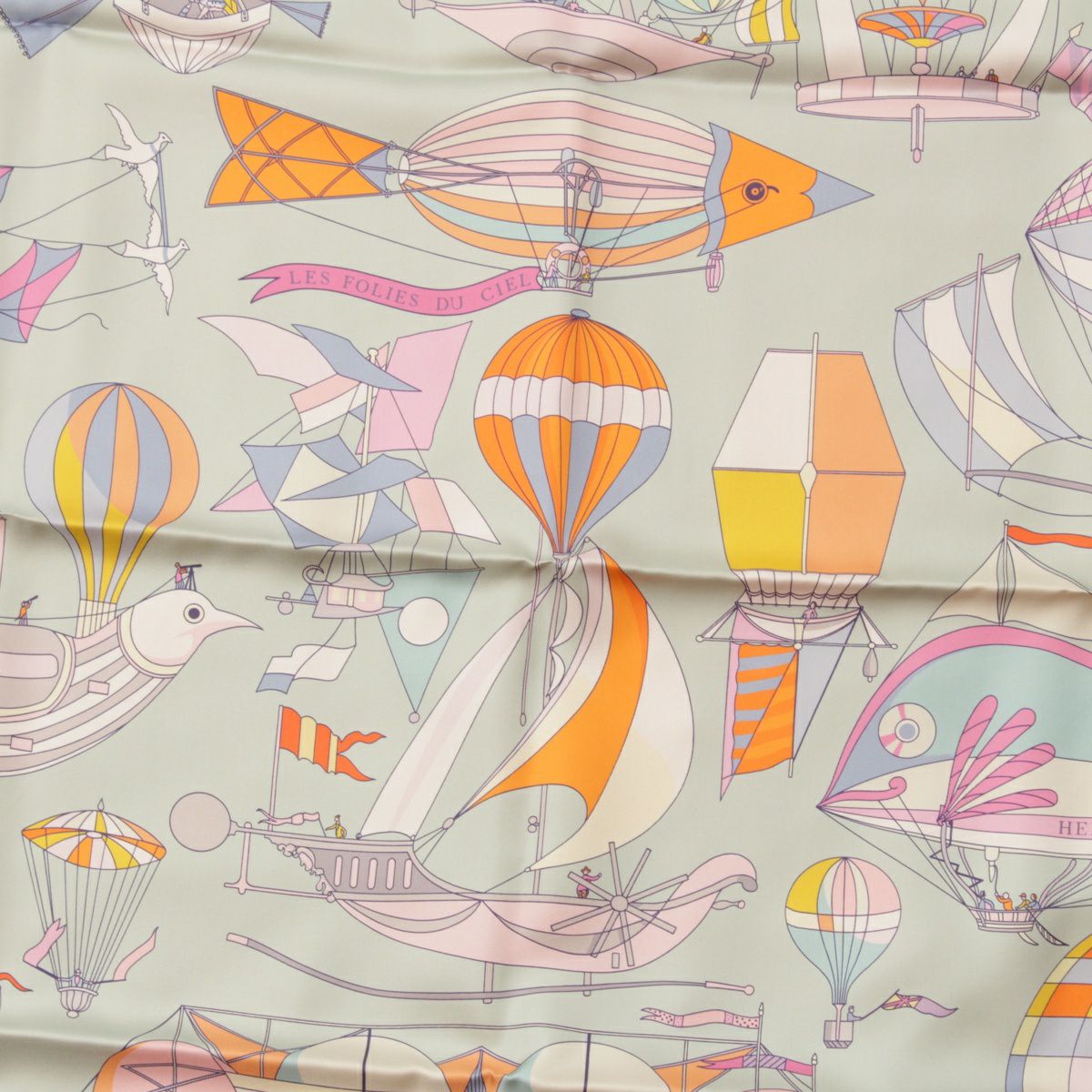 エルメス シルク カレ90 ダブルフェイス LES FOLIES DU CIEL 大空の狂気 スカーフ グレー×オレンジ