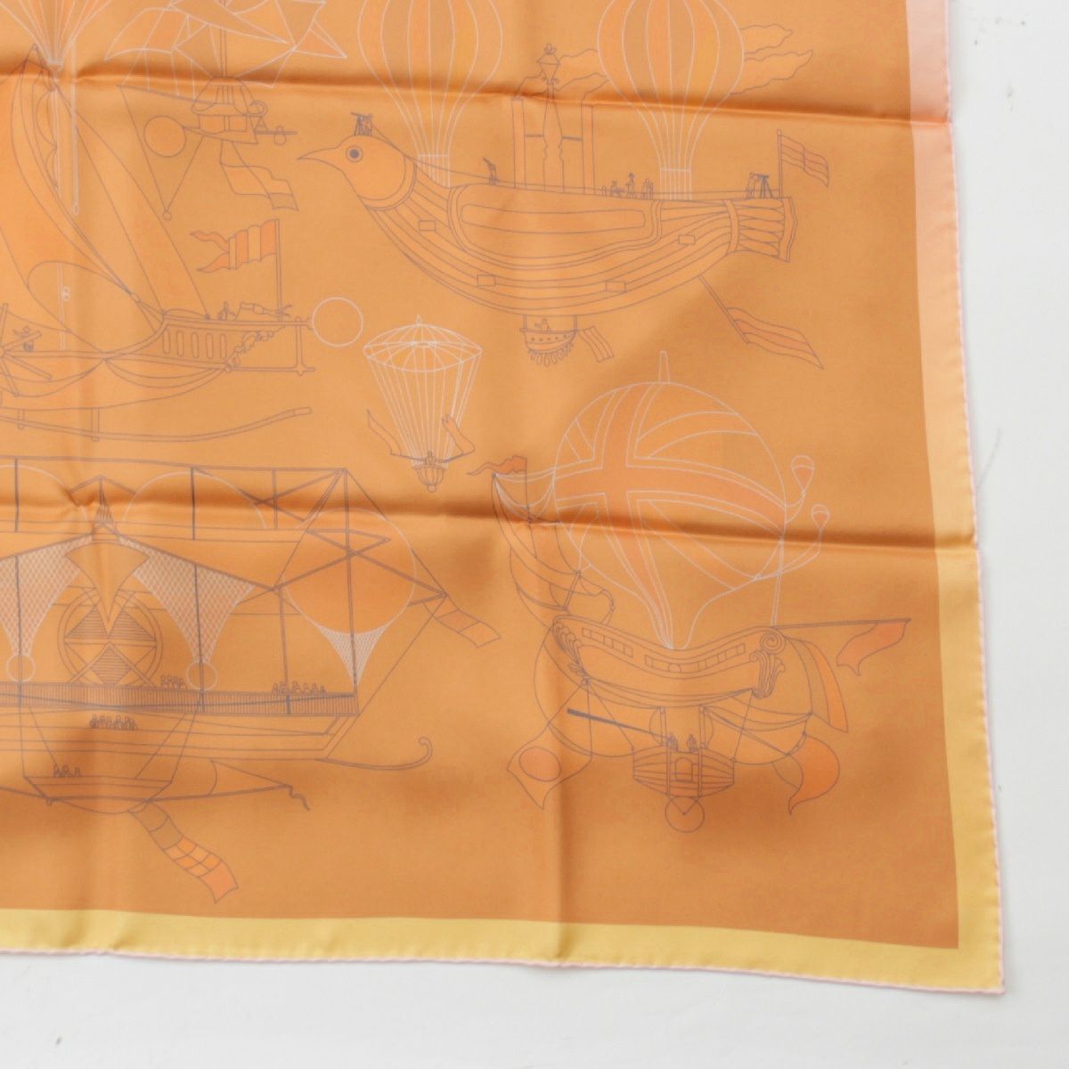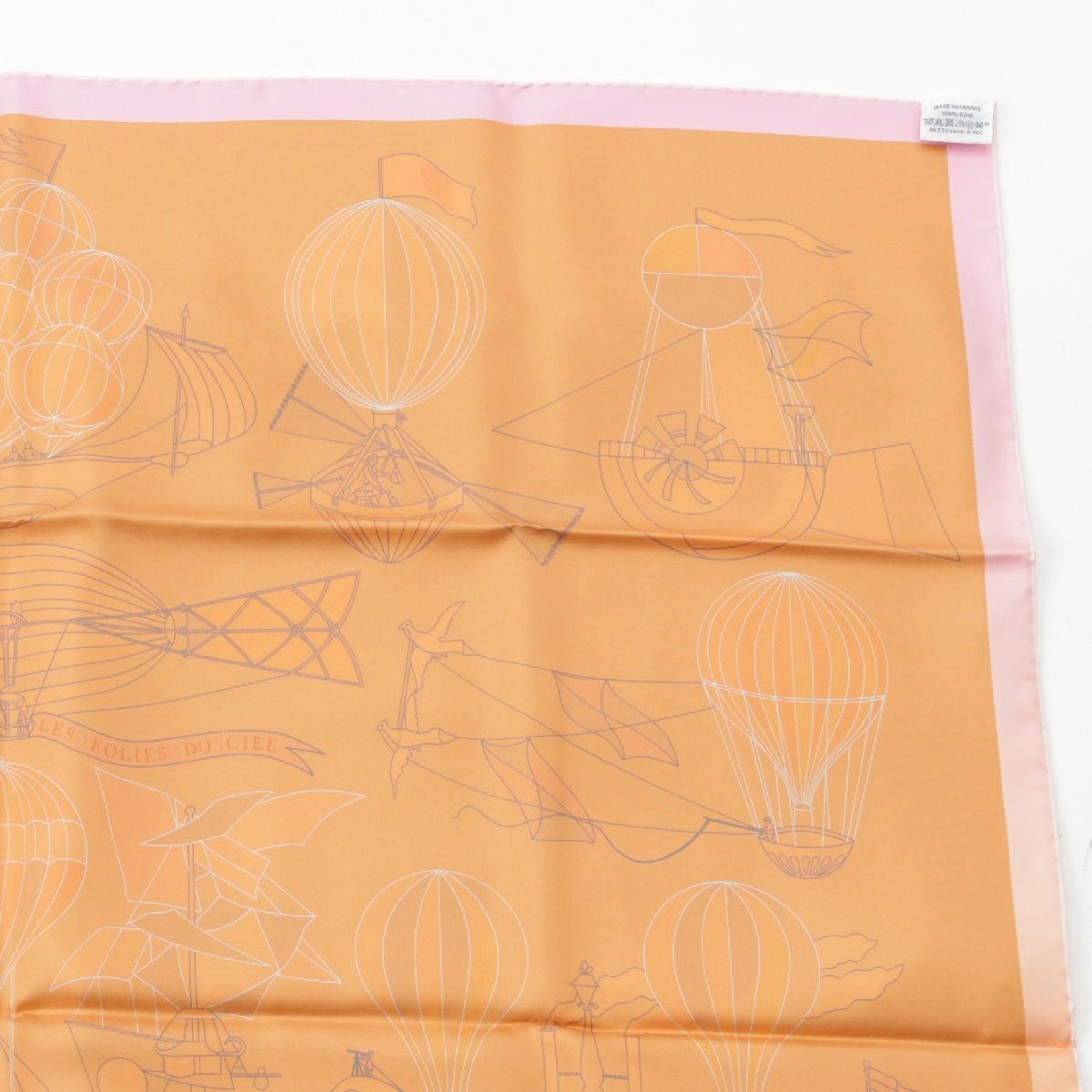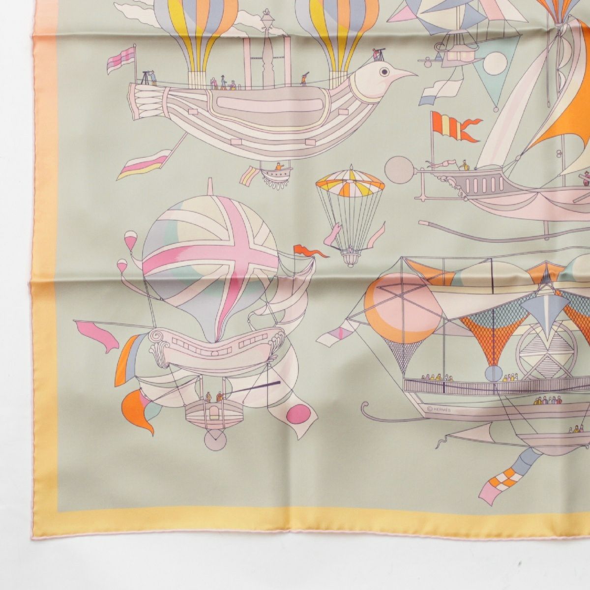 エルメス シルク カレ90 ダブルフェイス LES FOLIES DU CIEL 大空の狂気 スカーフ グレー×オレンジ