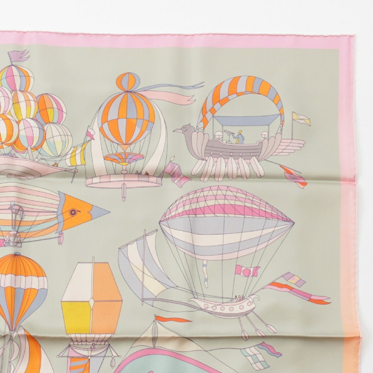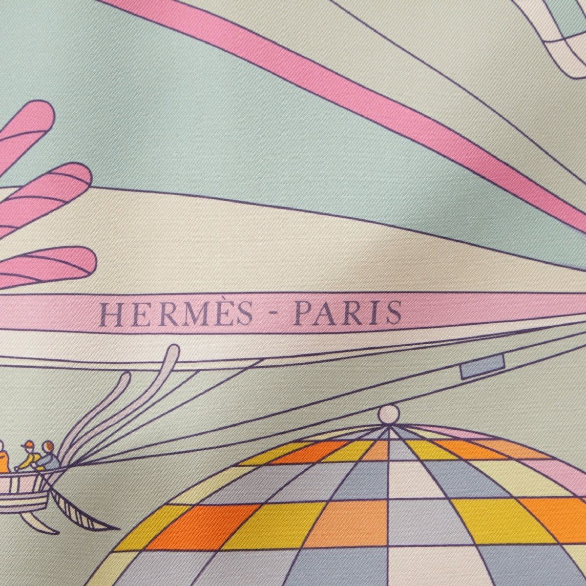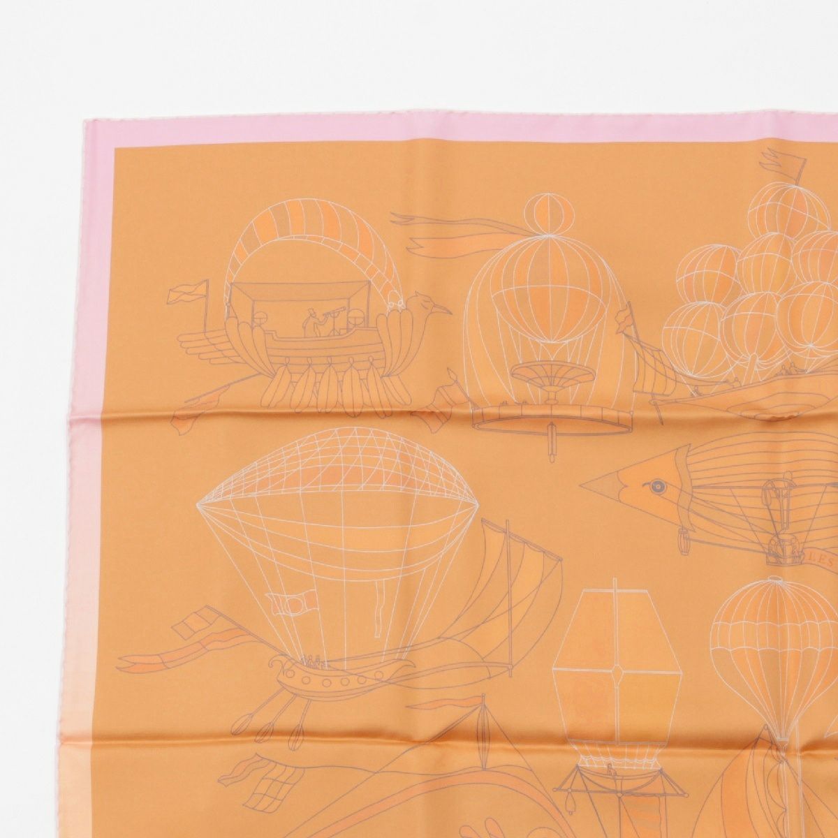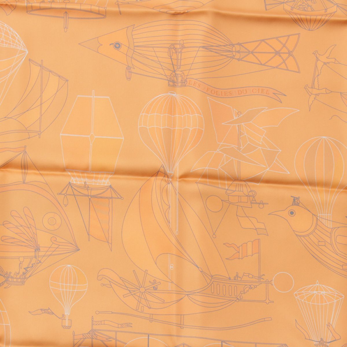 エルメス シルク カレ90 ダブルフェイス LES FOLIES DU CIEL 大空の狂気 スカーフ グレー×オレンジ