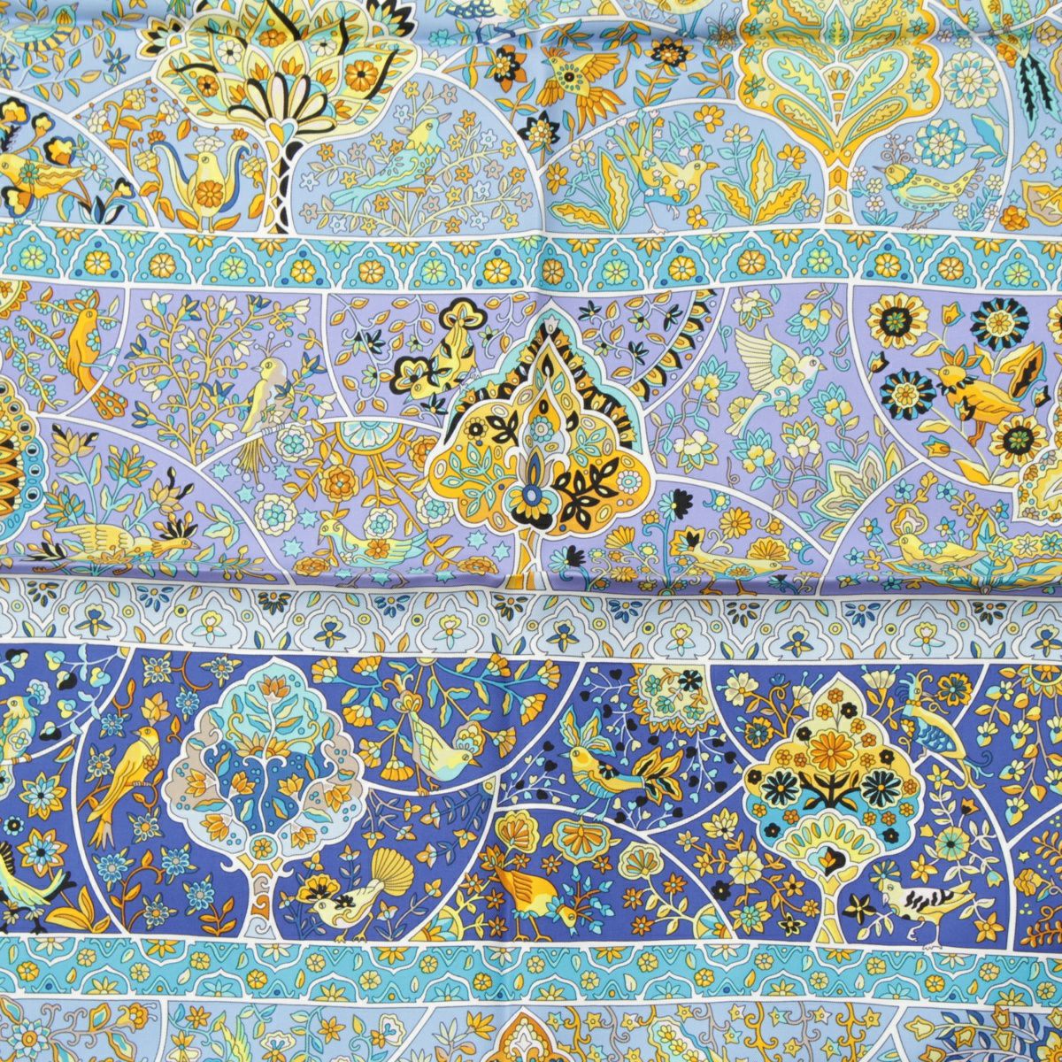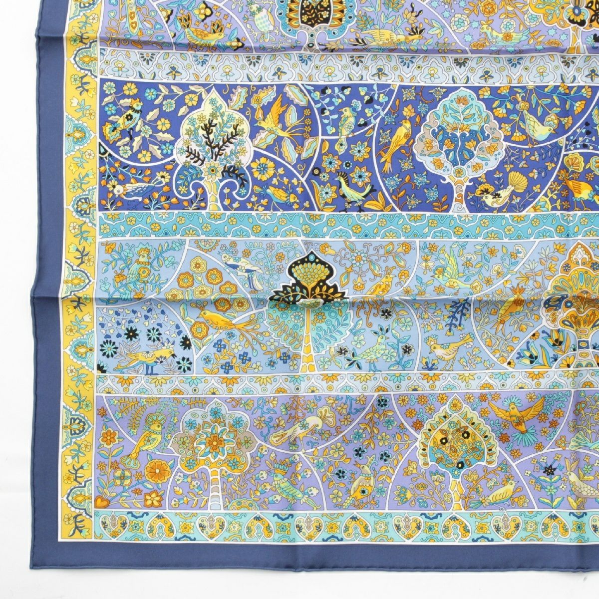 エルメス シルク カレ90 Au Pays des Oiseaux Fleurs 花咲く鳥たちの国で スカーフ ブルー