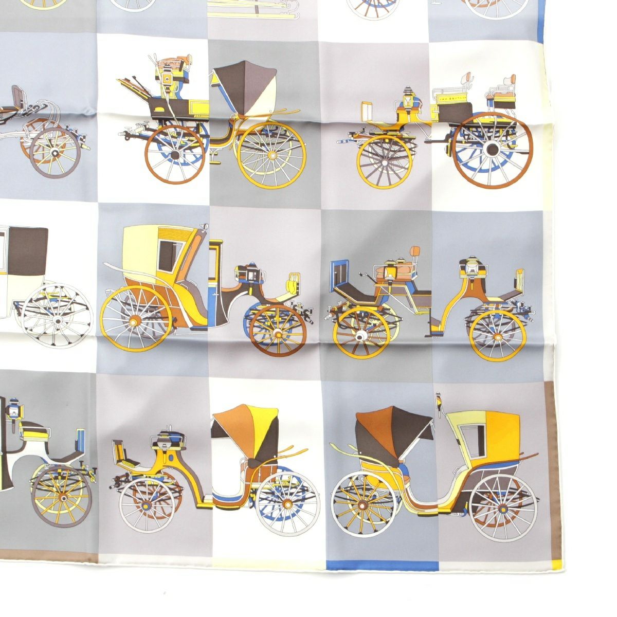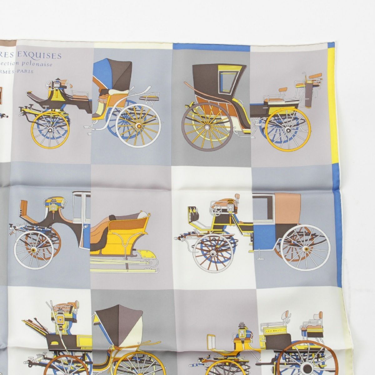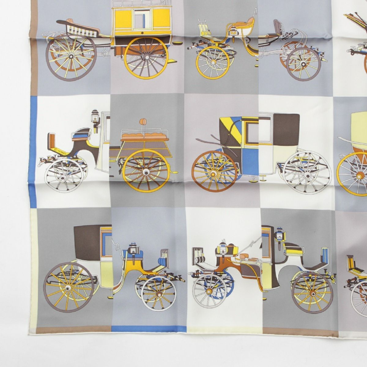 エルメス シルク カレ90 Voitures Exquises 精巧な馬車 スカーフ グレー