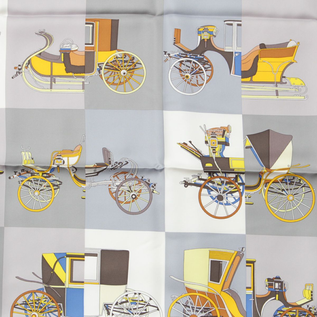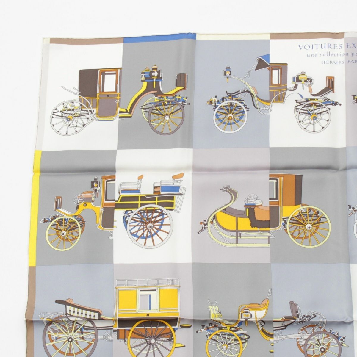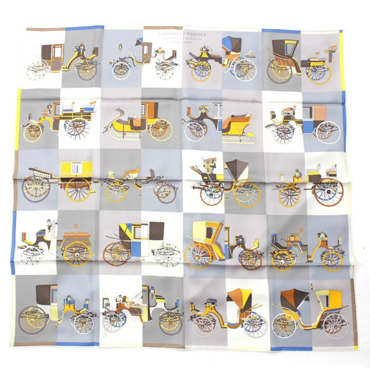 エルメス シルク カレ90 Voitures Exquises 精巧な馬車 スカーフ グレー