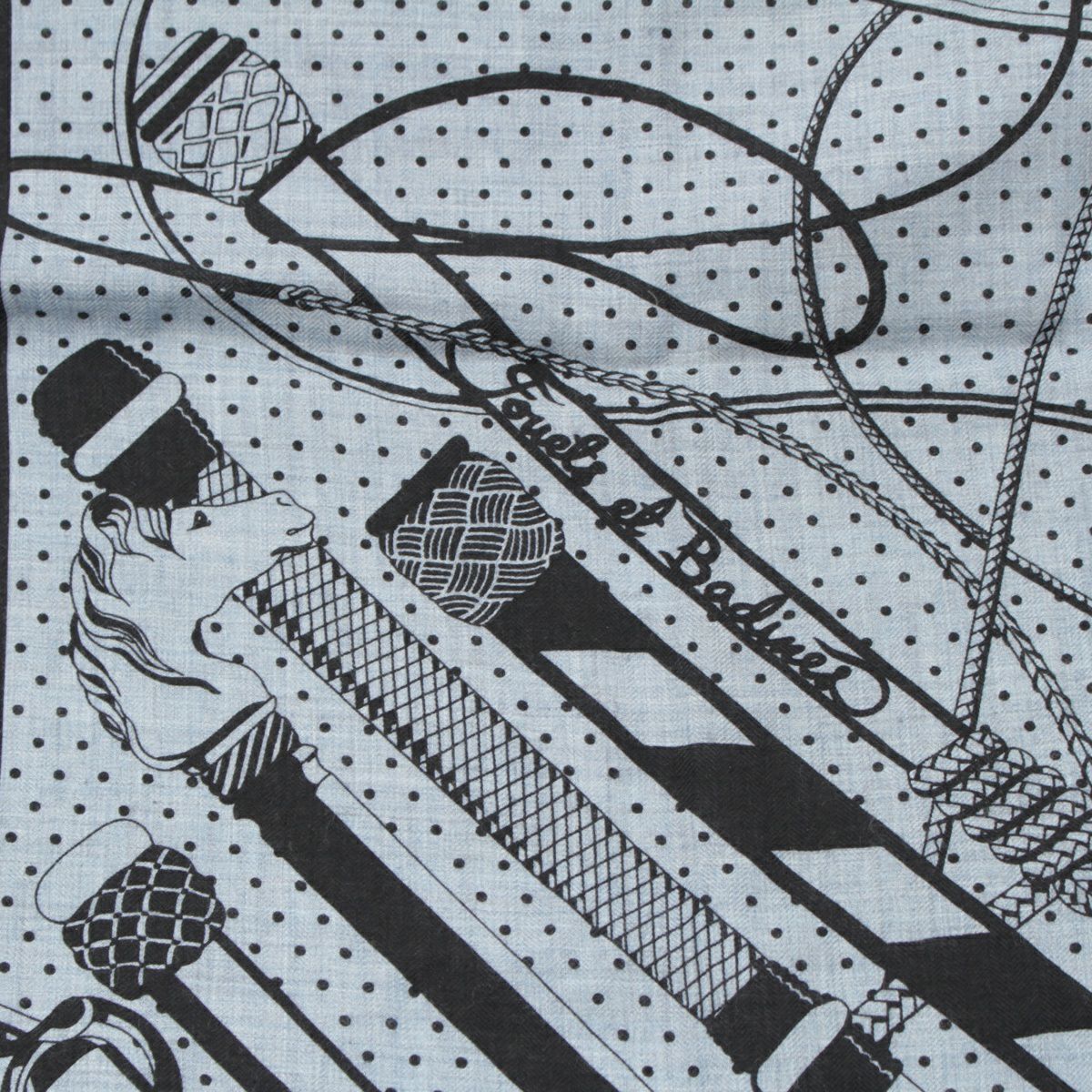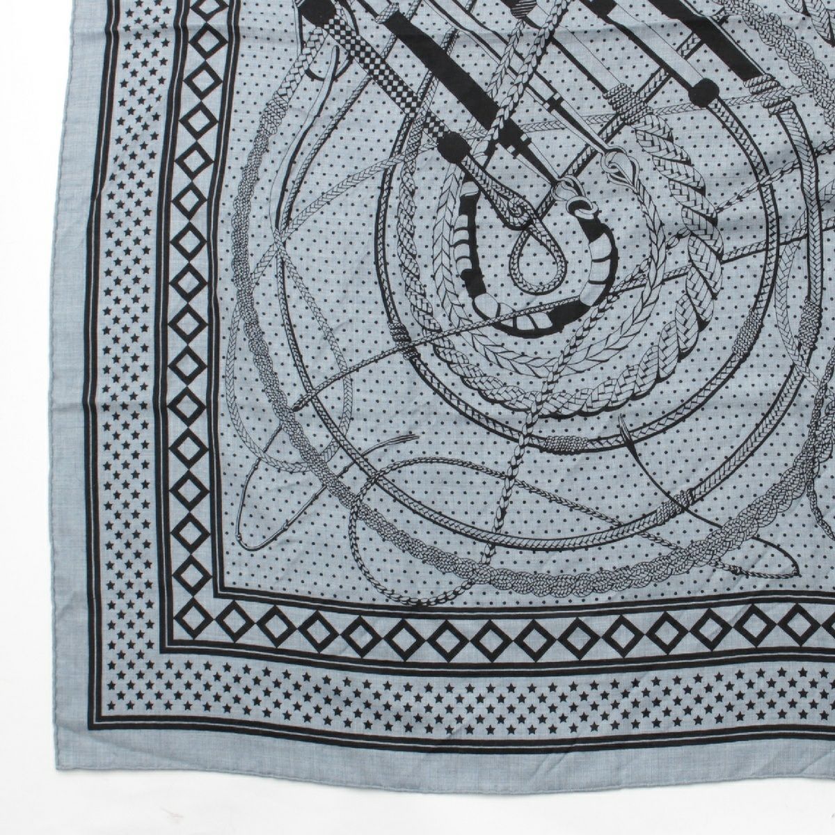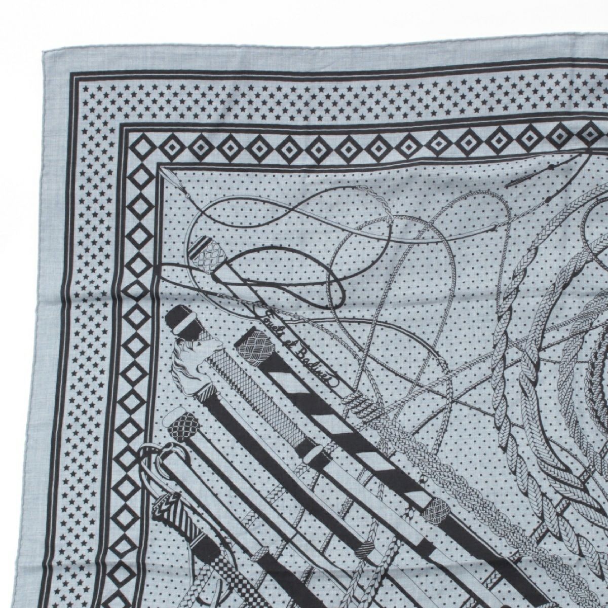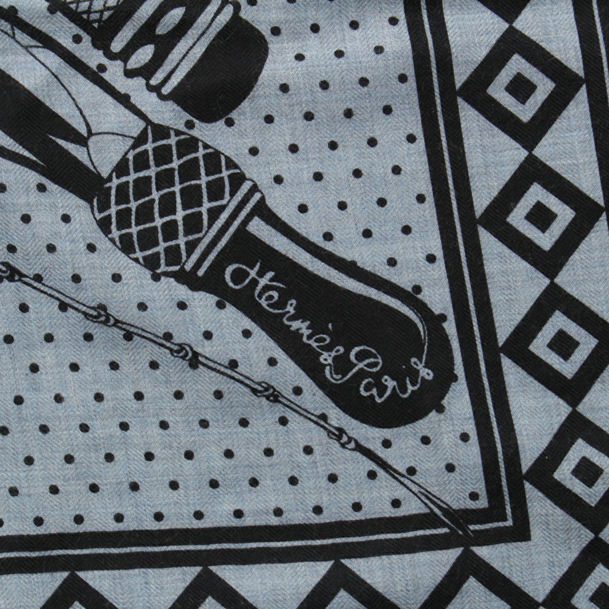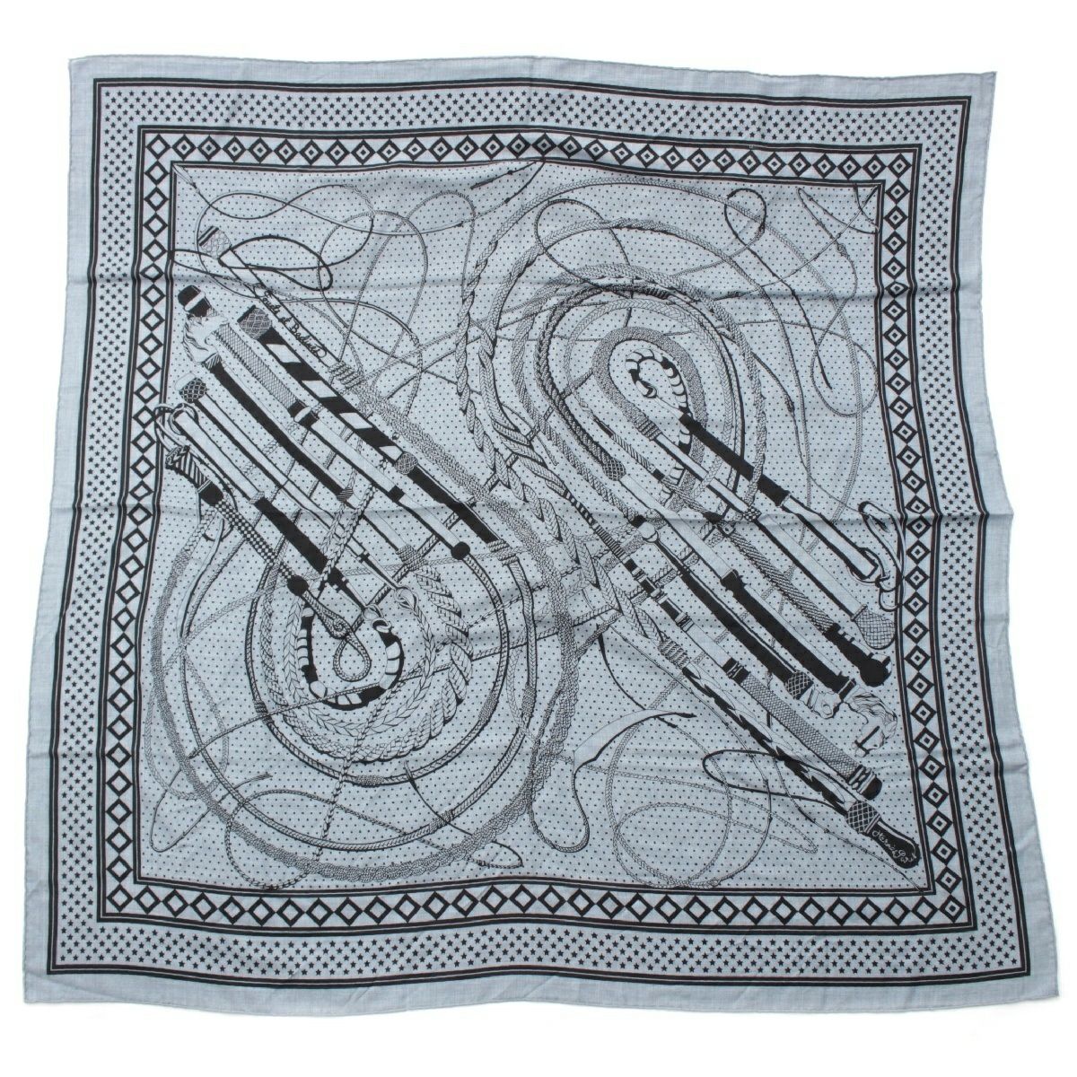 エルメス カレジェアン カシミヤ シルク Fouets et Badines Bandana ムチとグリップ バンダナ140 スカーフ インディゴ ブラック