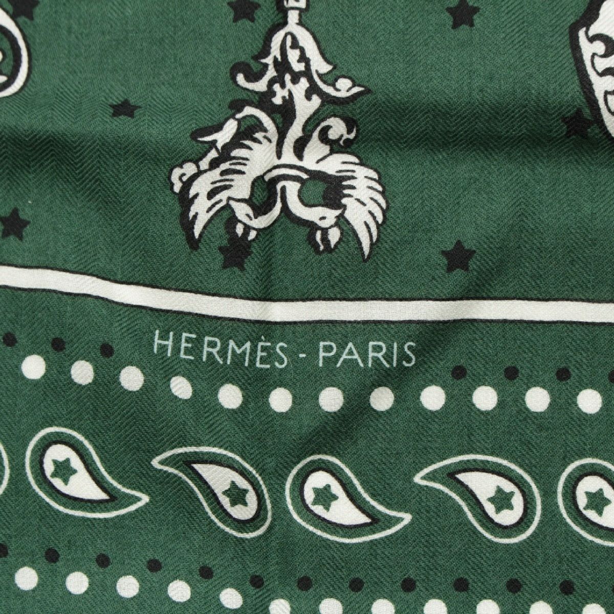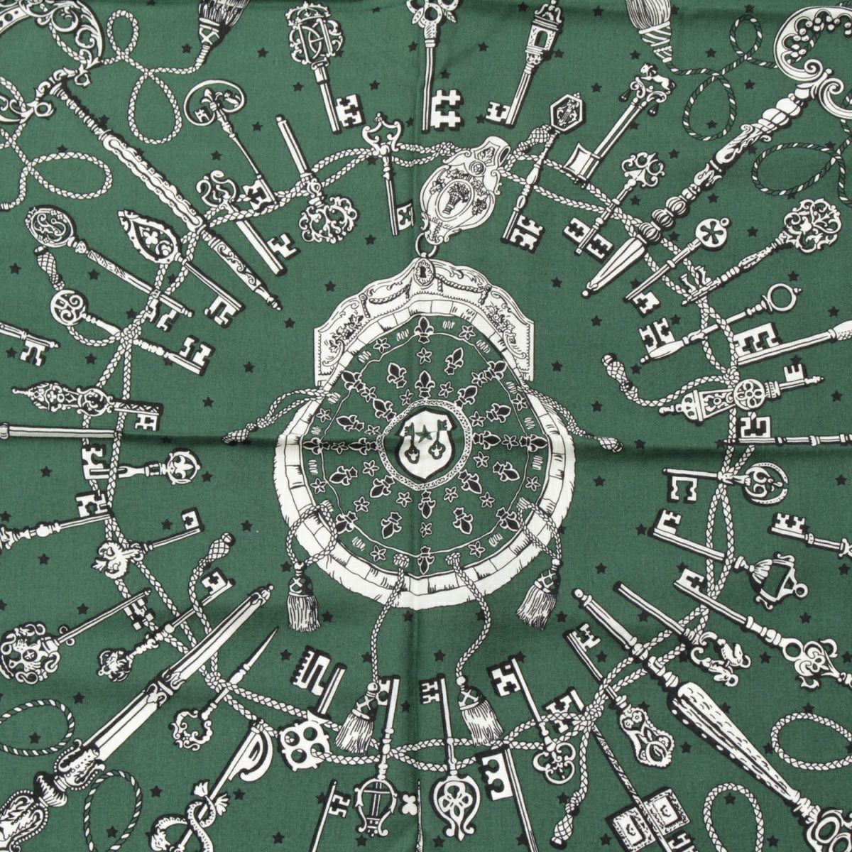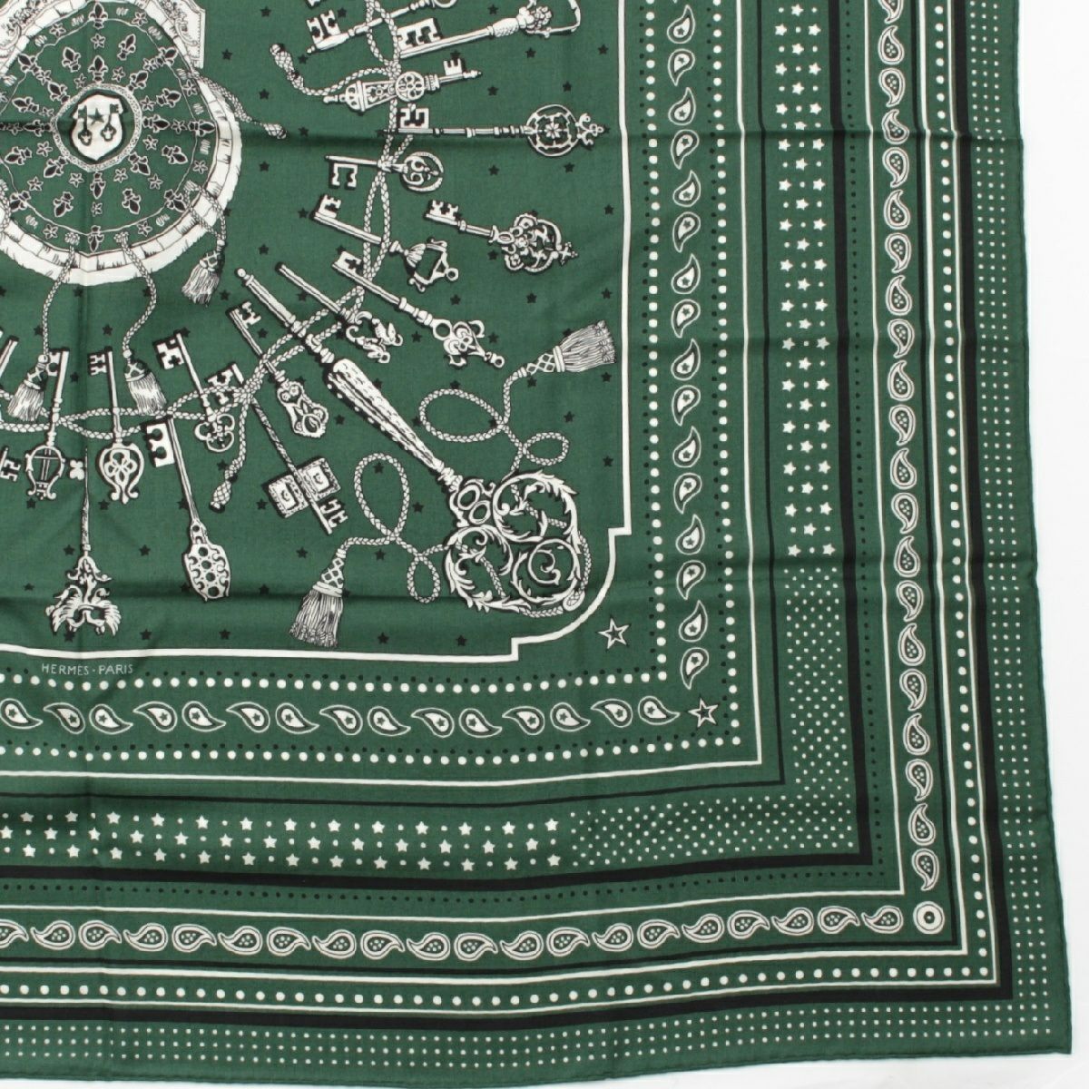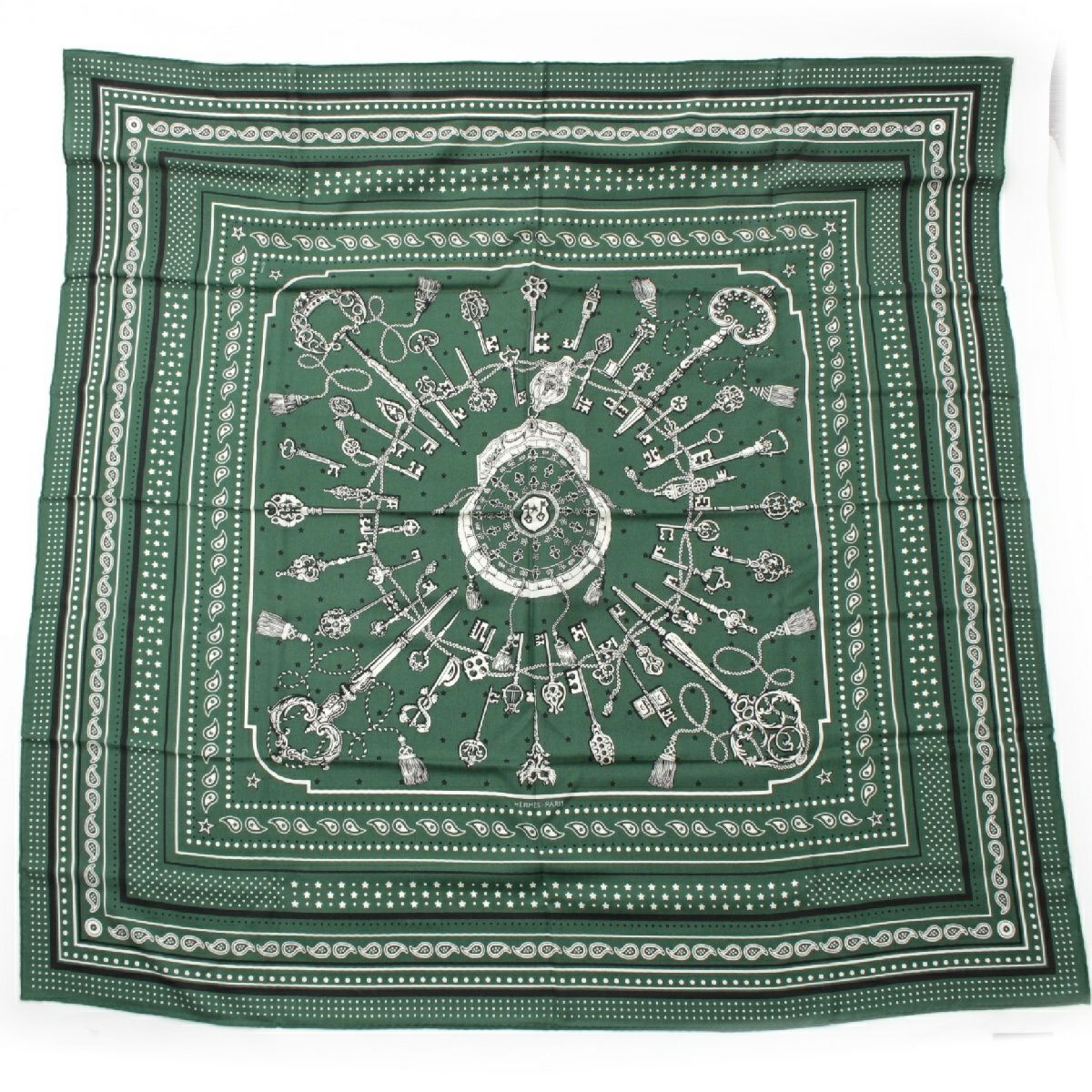 エルメス カレジェアン 140 カシミヤ×シルク Les Cles Bandana レクレ バンダナ 大判 スカーフ ストール ショール グリーン