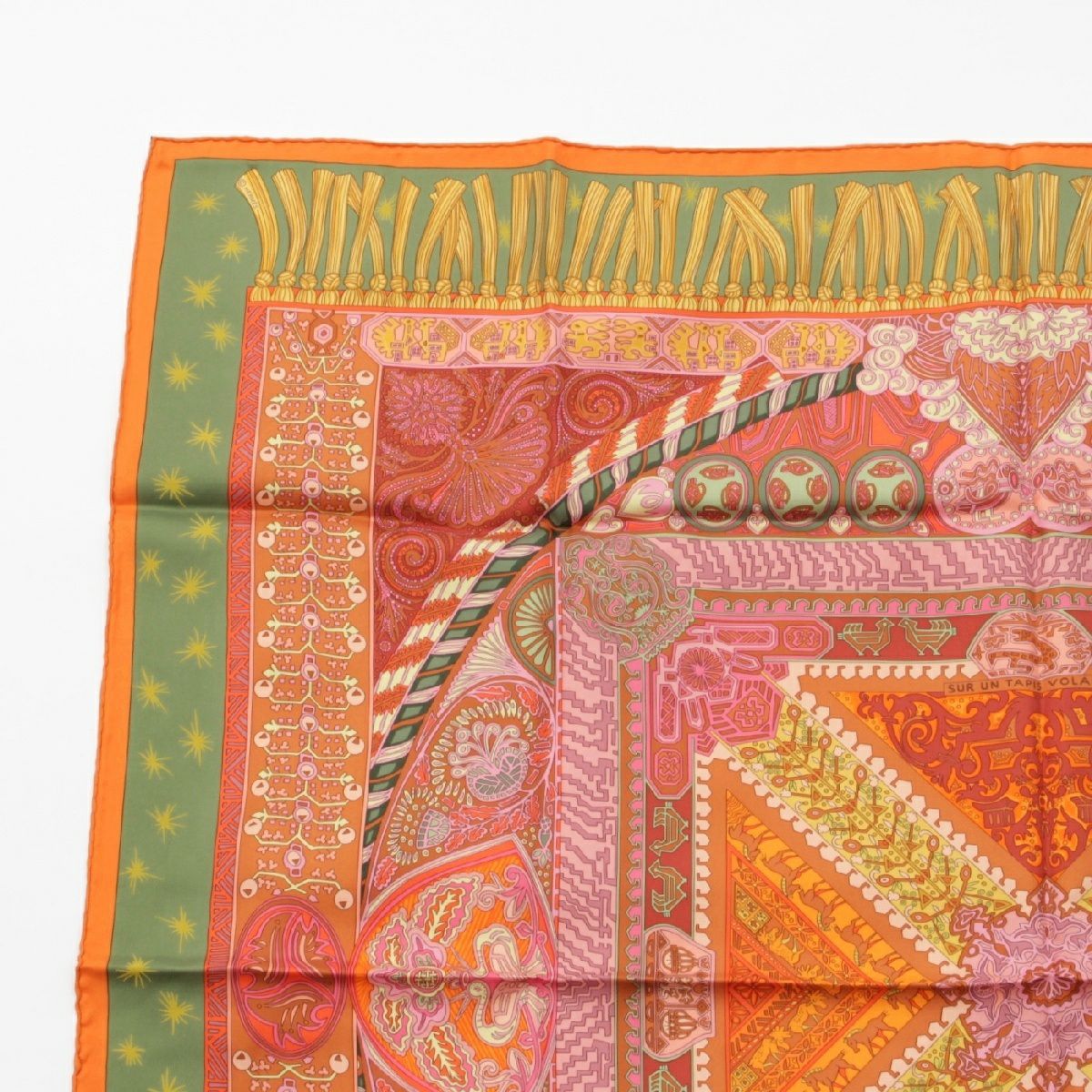 エルメス カレ90 シルク SUR UN TAPIS VOLANT 空飛ぶ絨毯に乗って スカーフ オレンジ マルチカラー